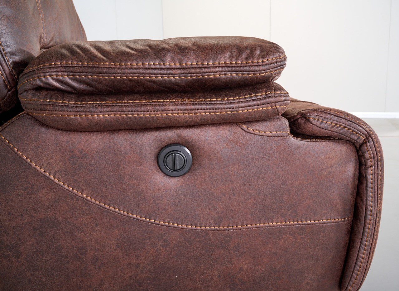 דגם סלאזור מגיע בבד רחיץ ויוקרתי בצבע חום במראה של דמוי עור, בעל ריקליינרים חשמליים למצב גלישה מקסימלי עד למצב שכיבה.