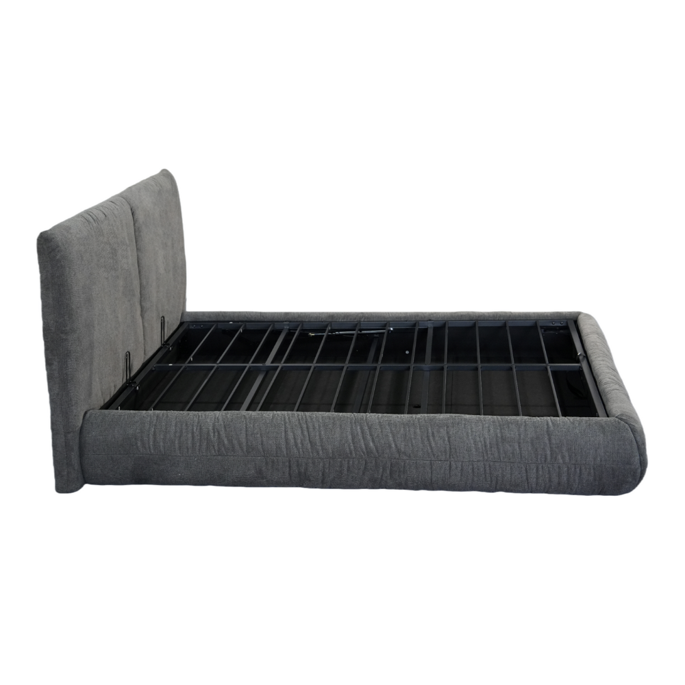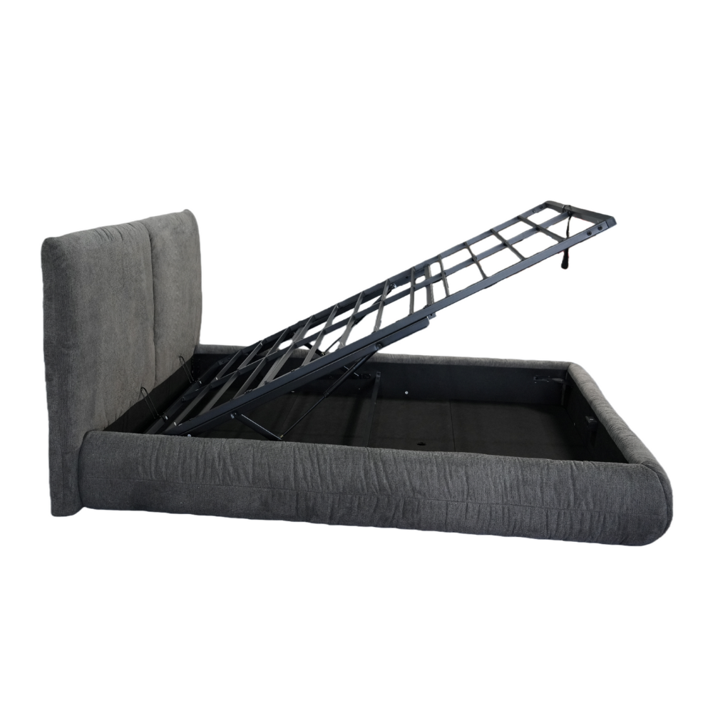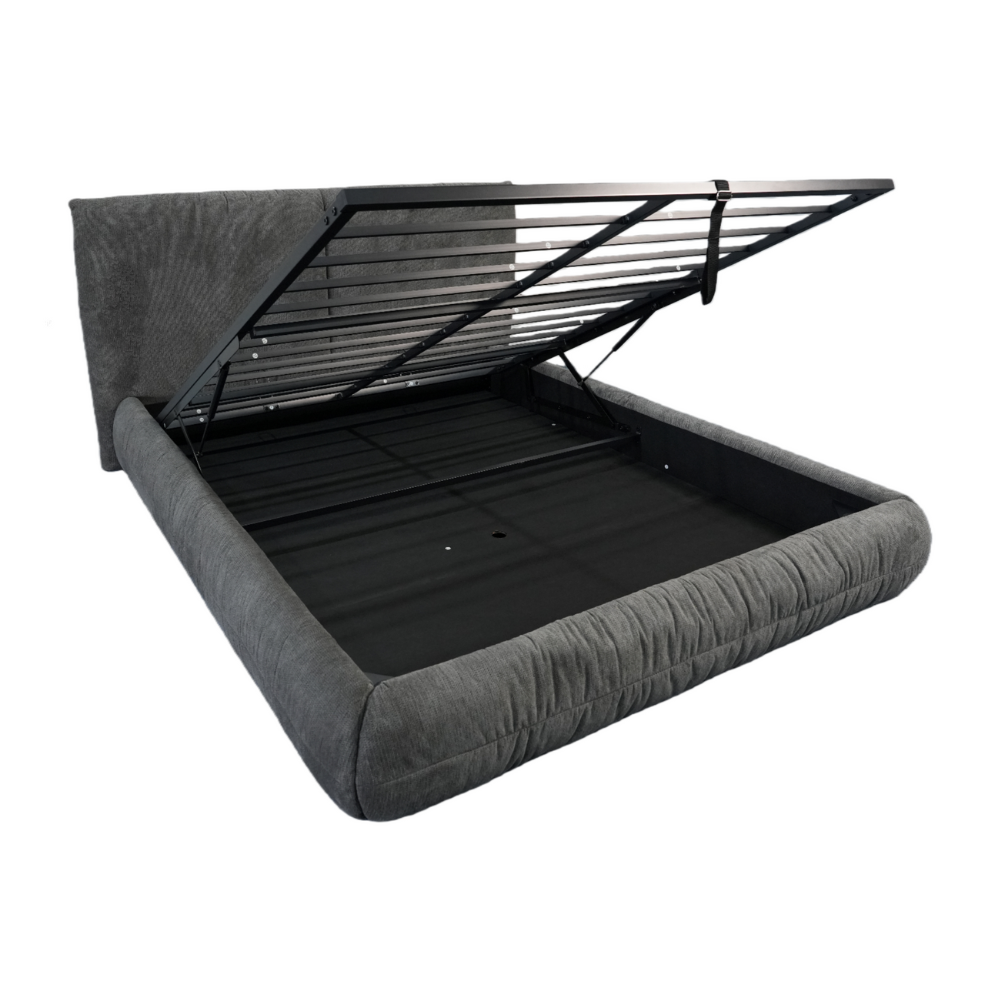 המיטה כוללת ארגז מצעים מובנה המספק פתרון אחסון חכם, מרווח ונגיש – אידיאלי לשמירה על סדר וארגון מבלי לוותר על העיצוב האסתטי והשלו של החלל.