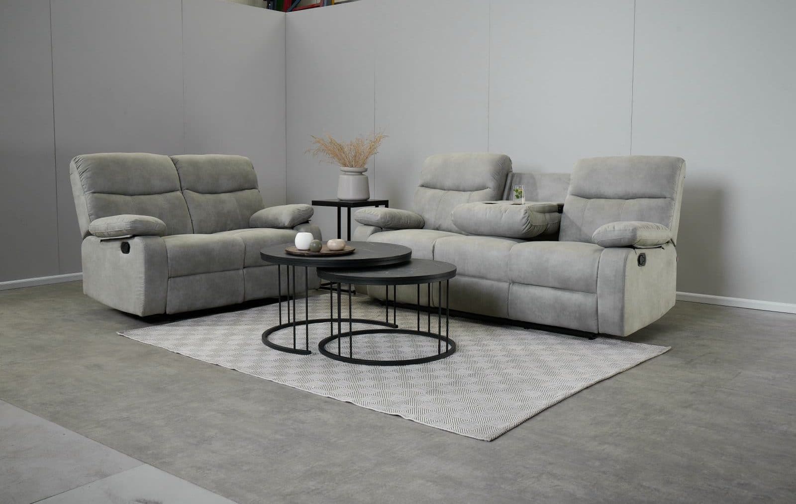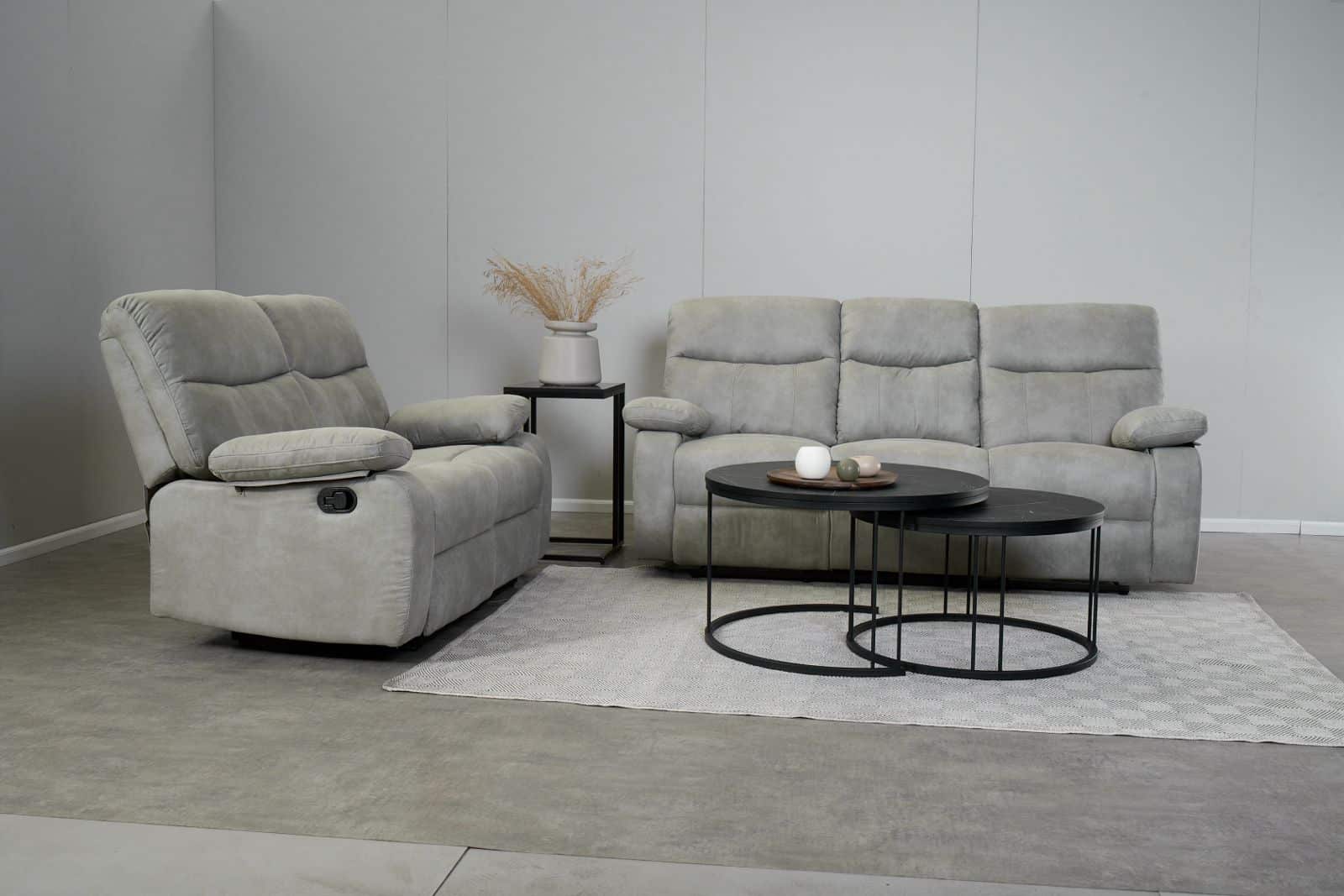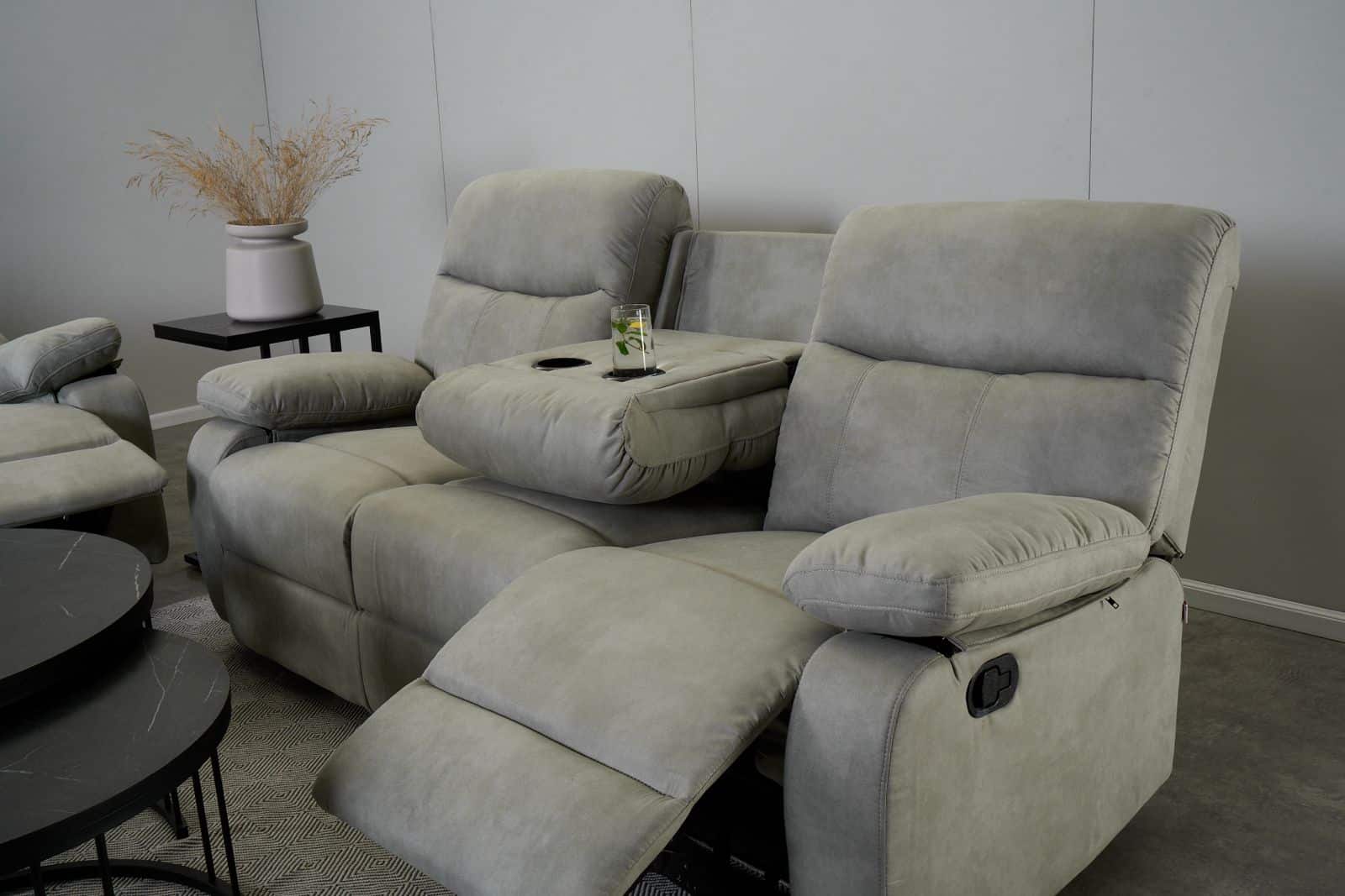 מערכת ישיבה עם ריקליינרים 3+2 דגם אמברוס אפור בהיר