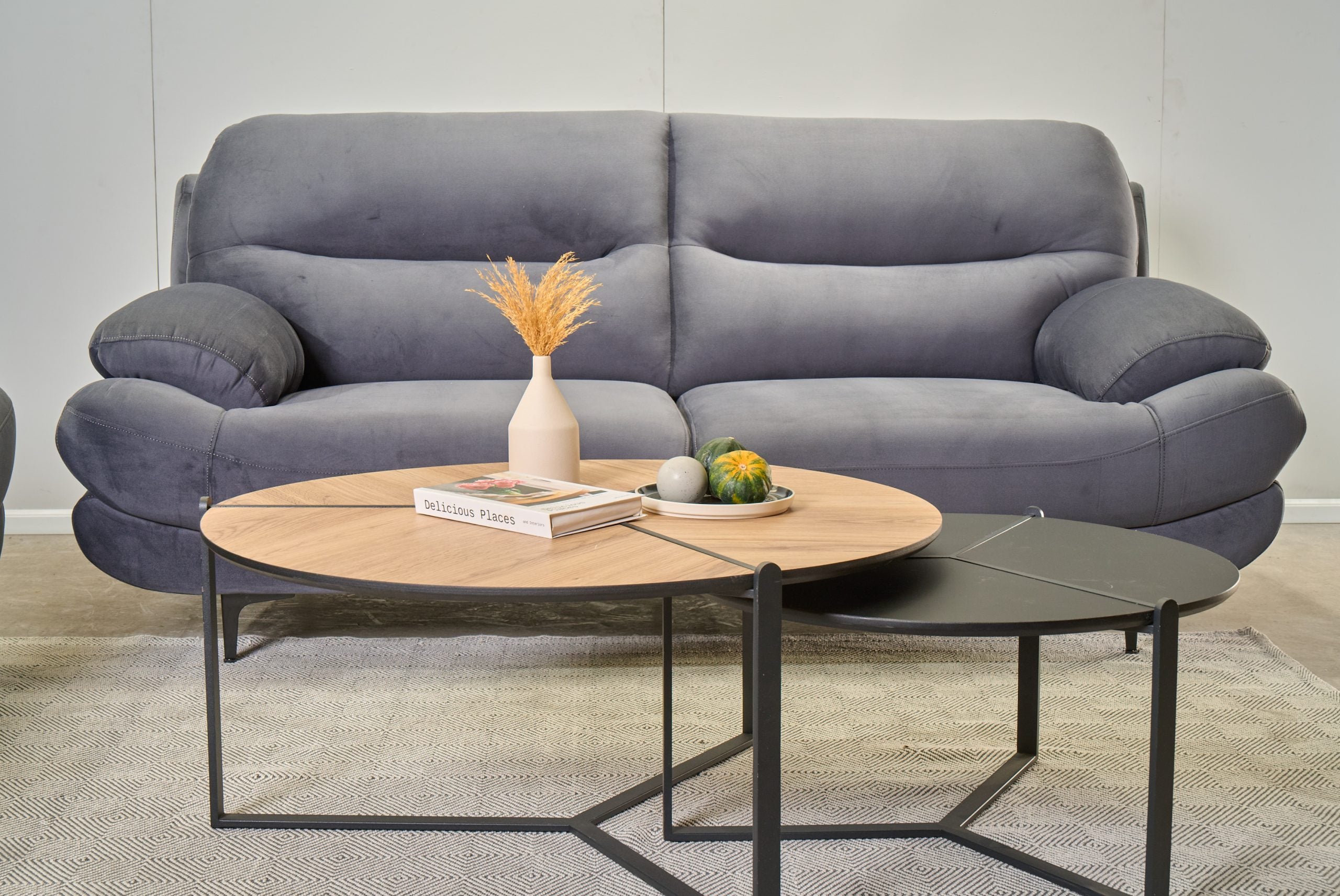 לסלון רגליים שחורות ואלגנטיות ממתכת.