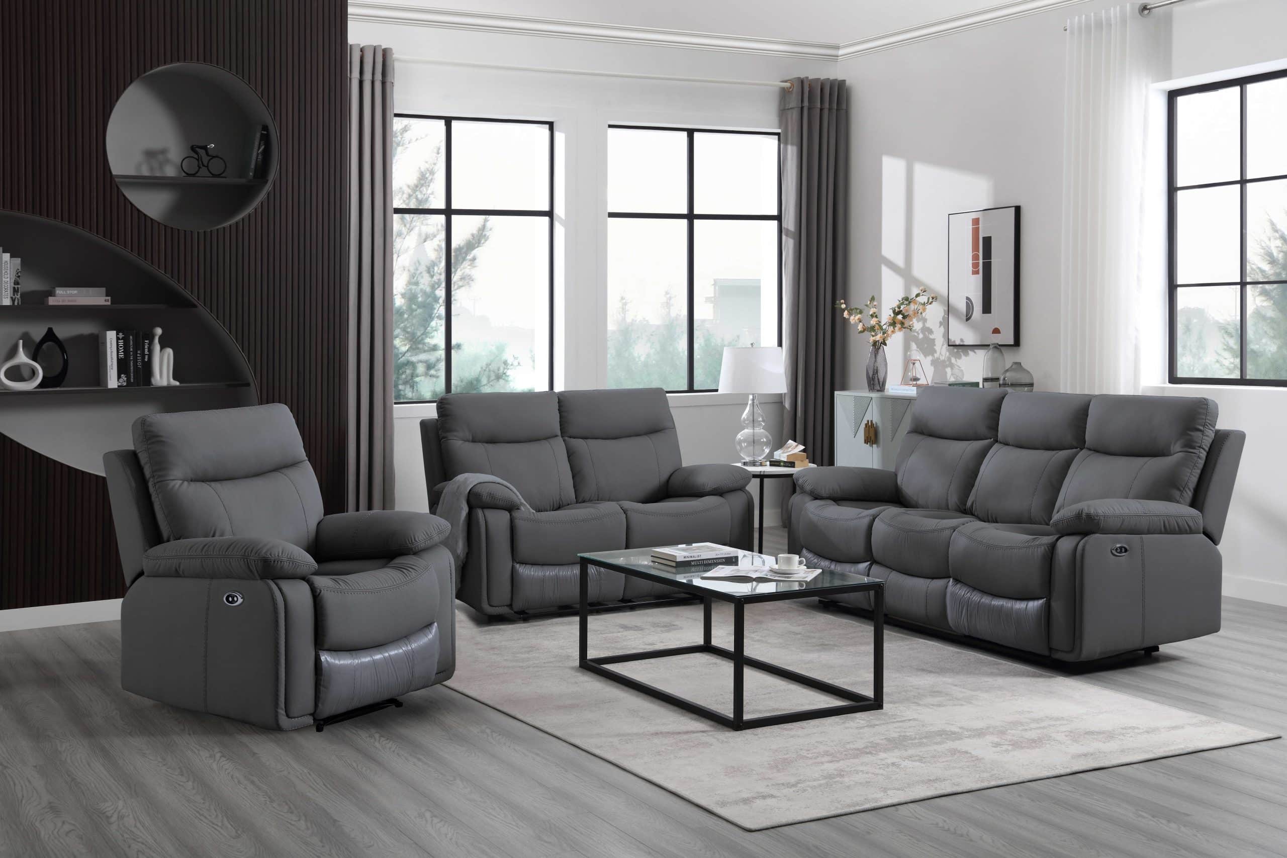מערכת ישיבה 3+2+1 עם ריקליינרים חשמליים דגם איקארו דמוי עור אפור כהה