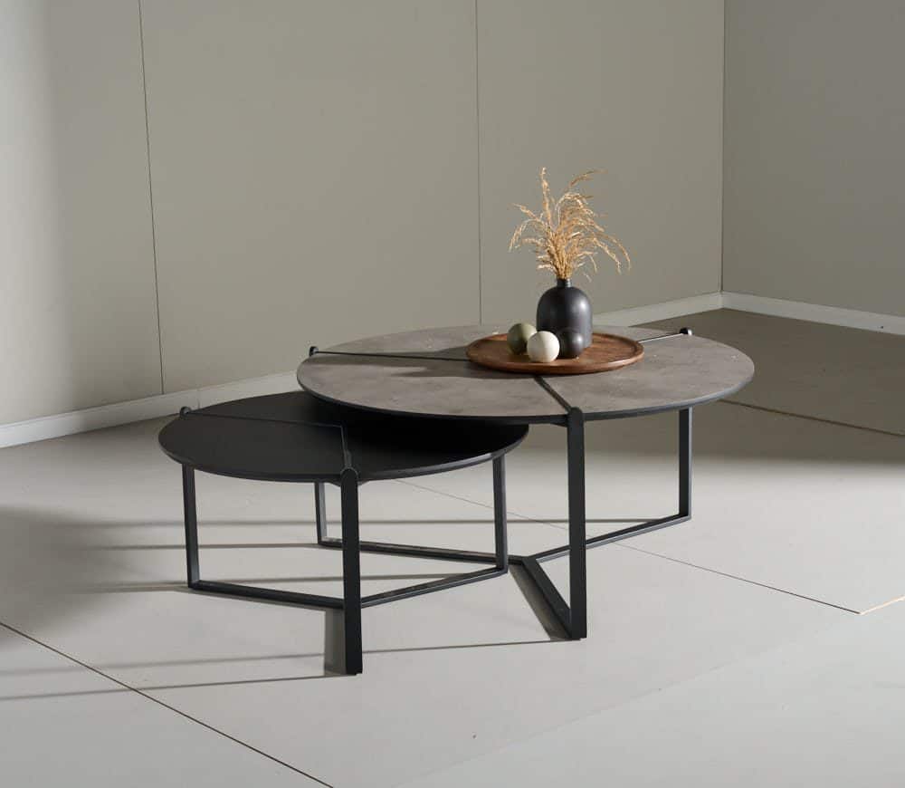 סט שולחנות סלון דמוי בטון + שחור – דגם לקסוס