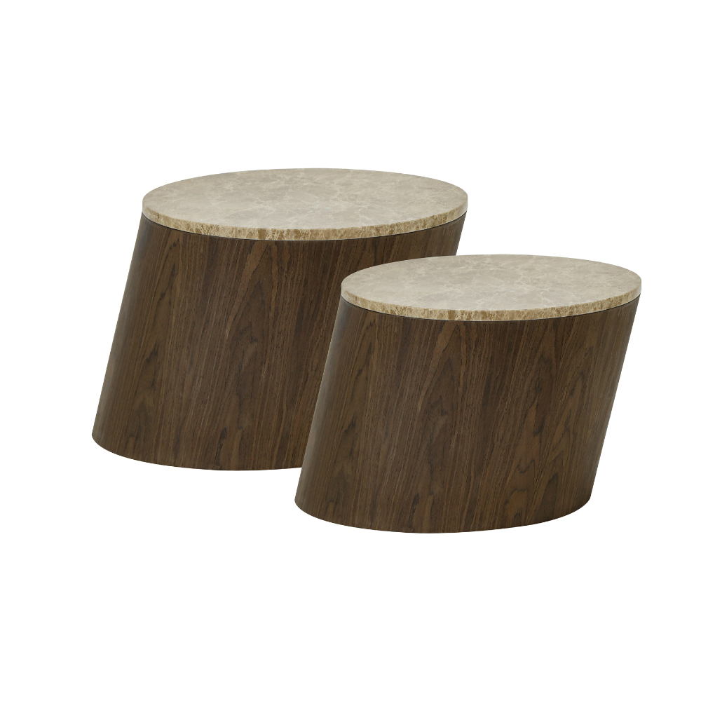סט שולחנות מעוצבים דגם מארבל – אגוז אמריקאי ושיש חום
