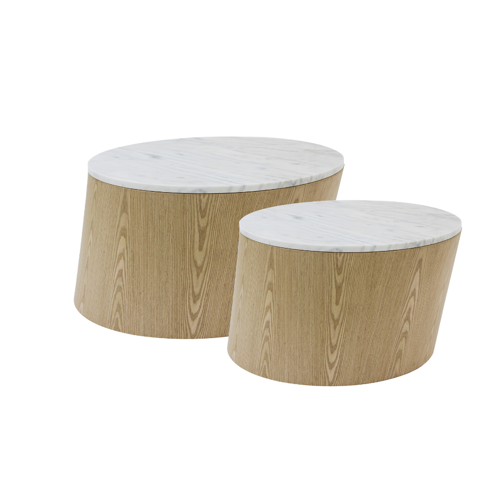 סט שולחנות מעוצבים דגם מארבל – עץ טבעי ושיש לבן