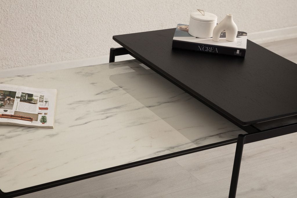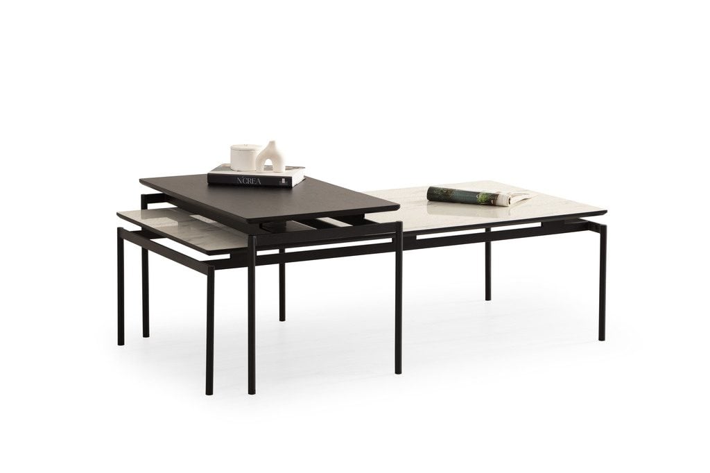 סט שולחנות סלון מעוצב דמוי שיש לבן מבריק דגם מונקו