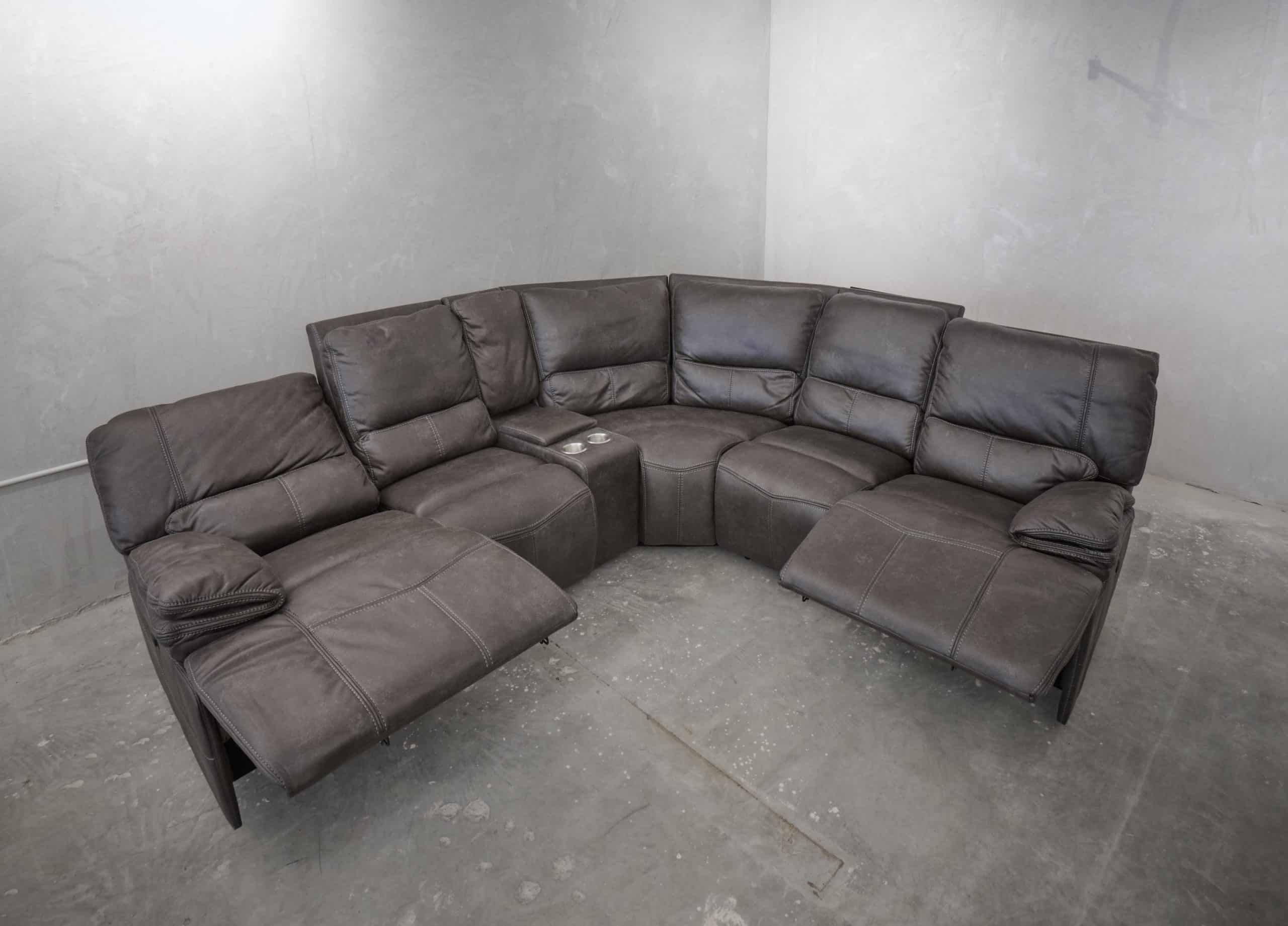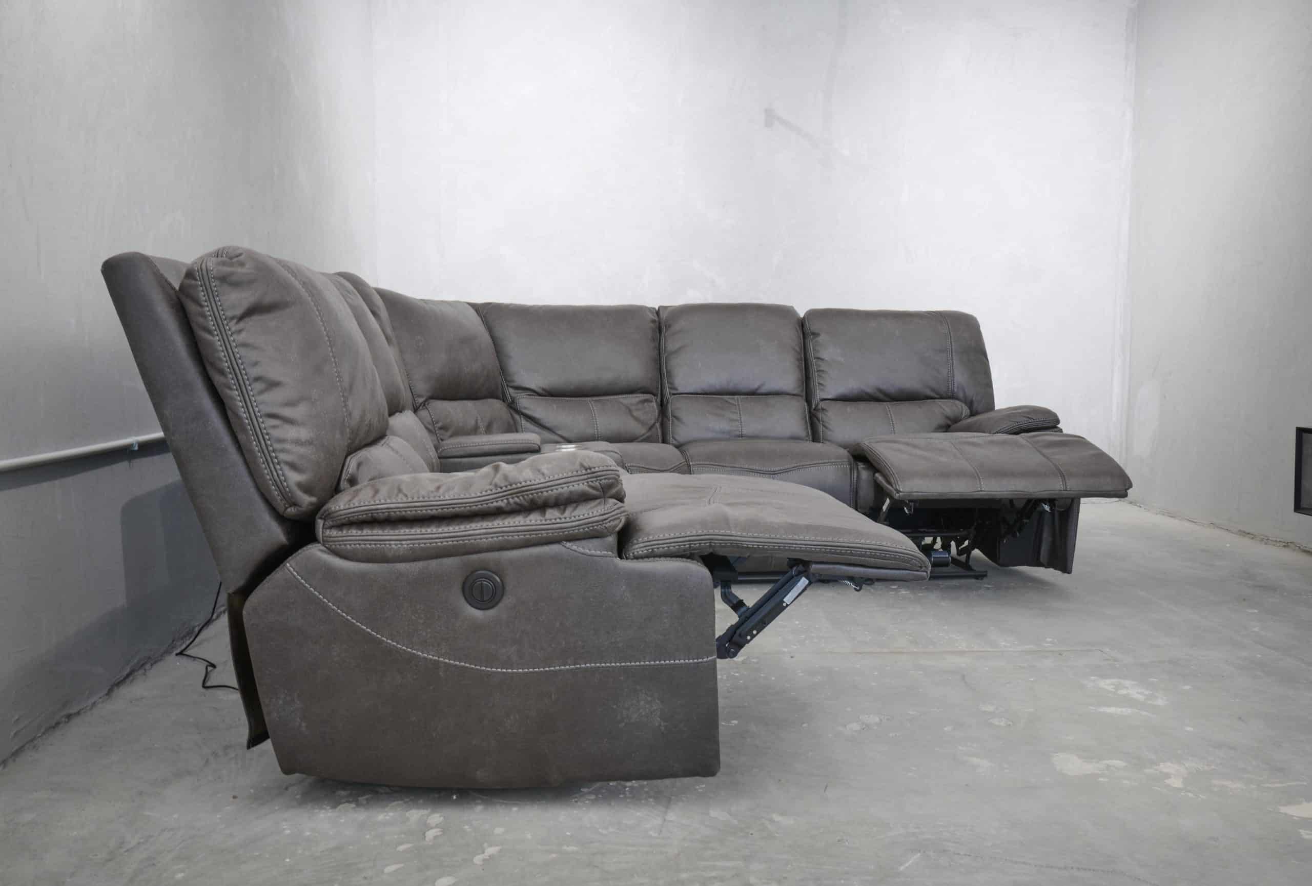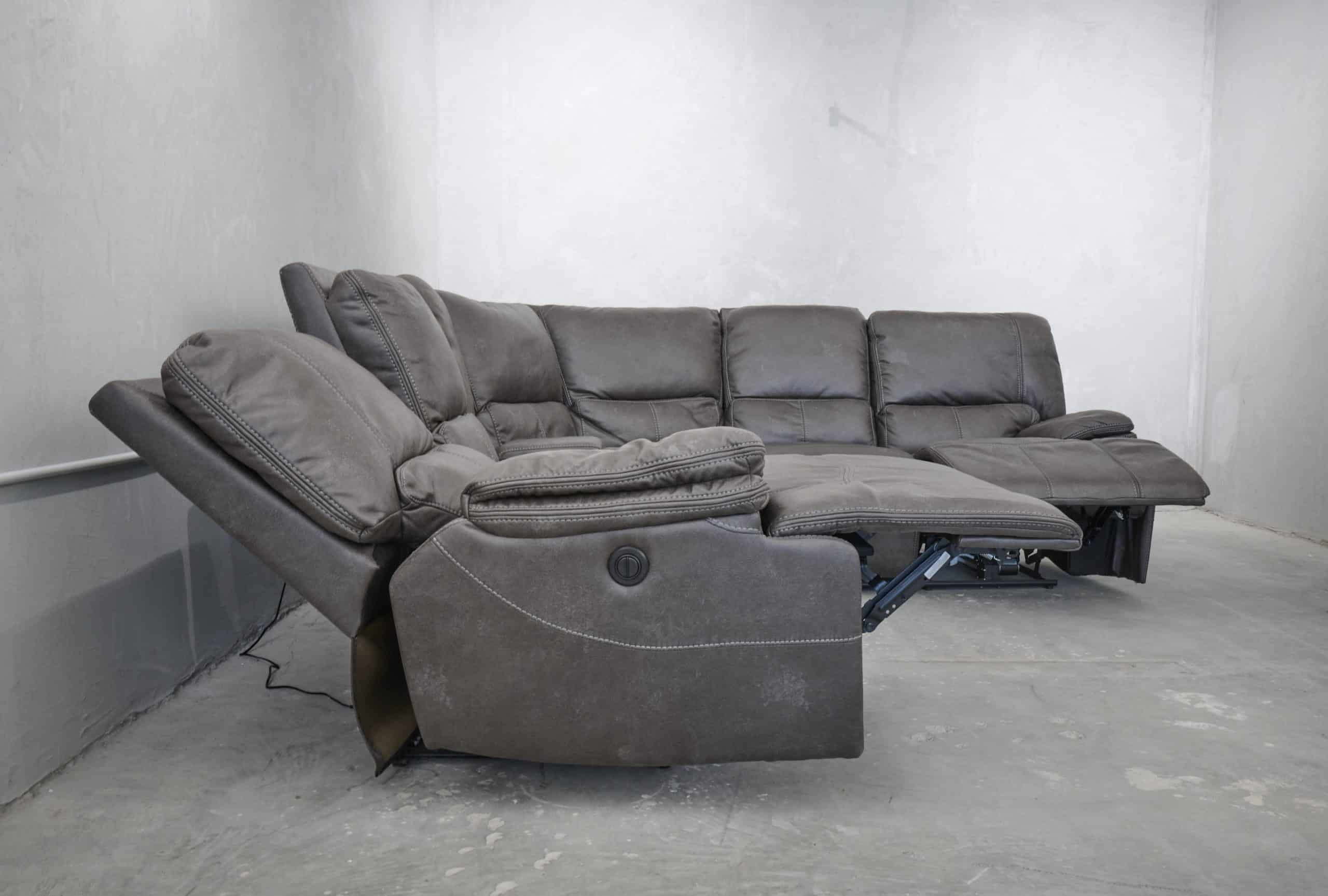 סלון פינתי מודולרי עם ריקליינרים חשמליים דגם רונטו באפור כהה