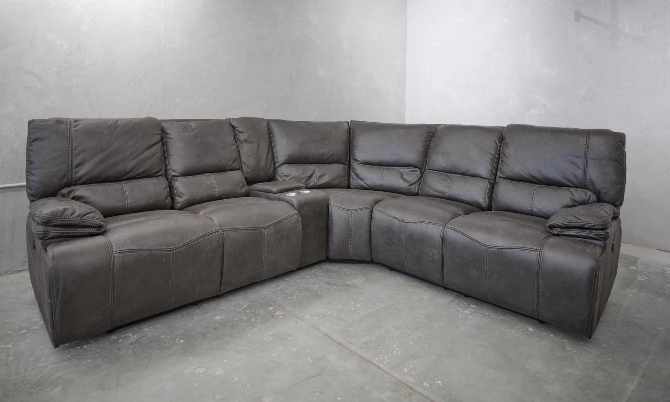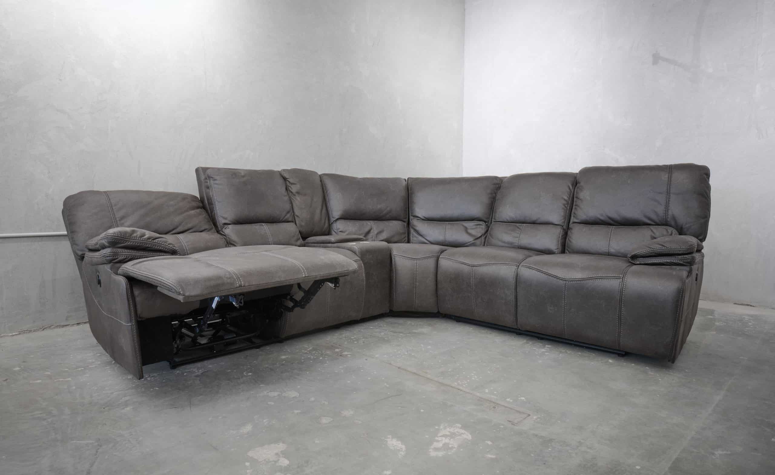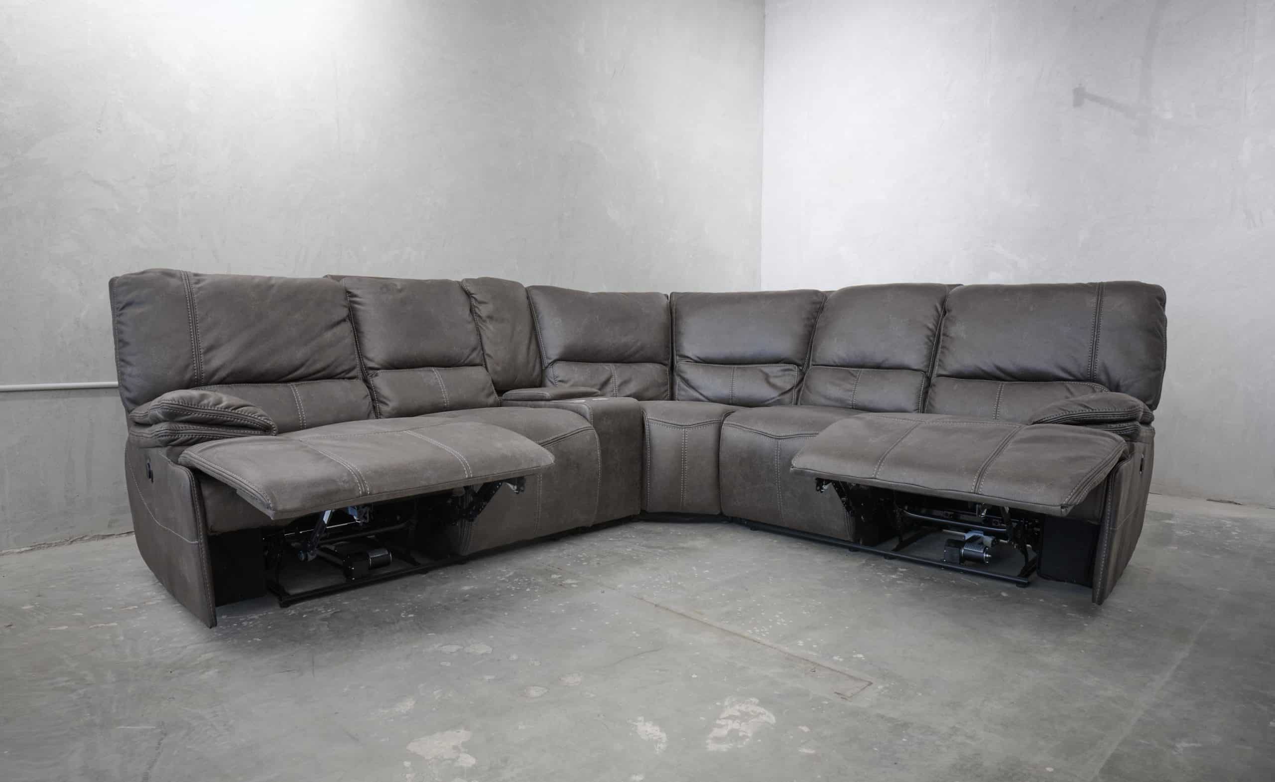 סלון פינתי מודולרי עם ריקליינרים חשמליים דגם רונטו באפור כהה
