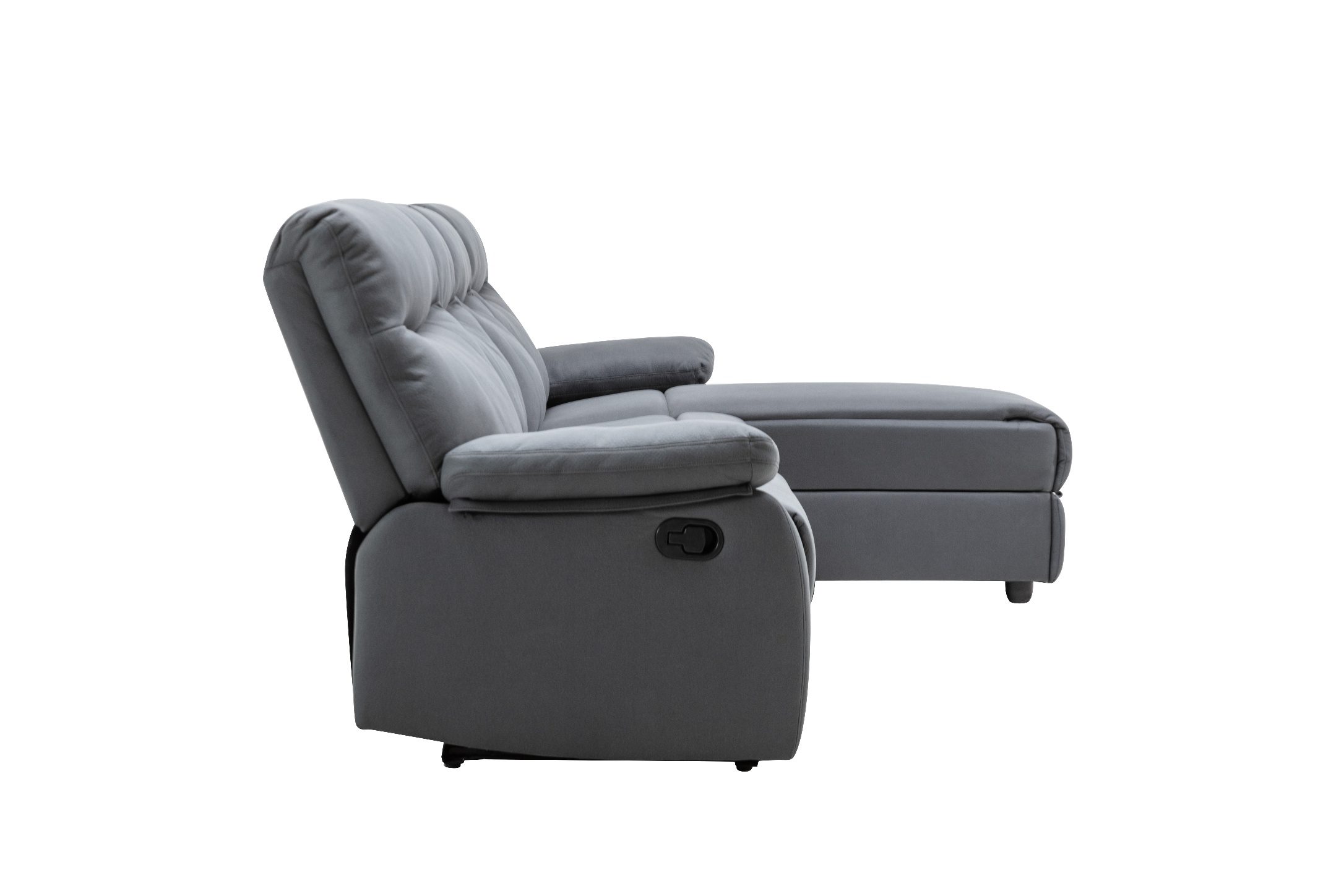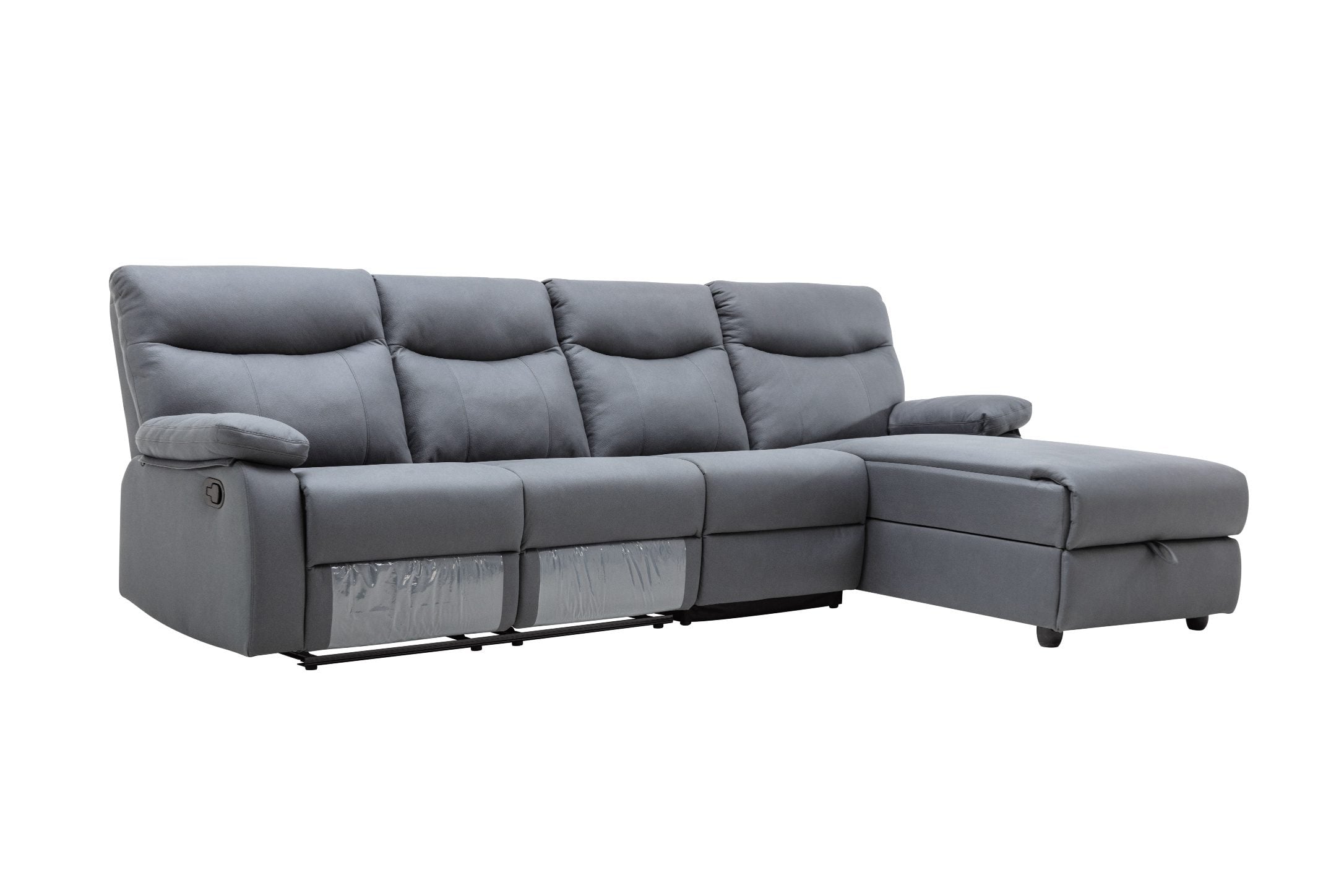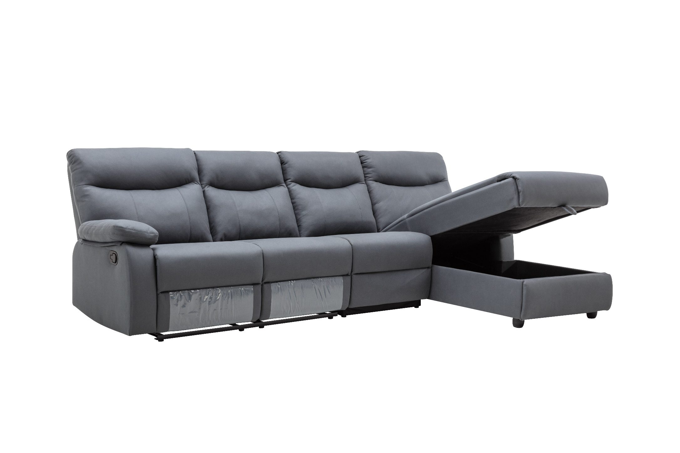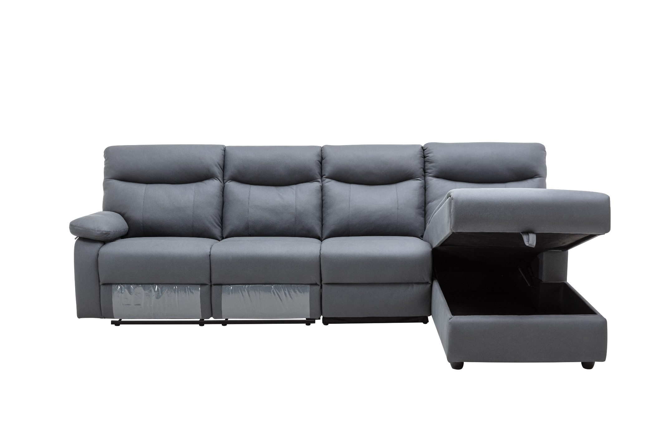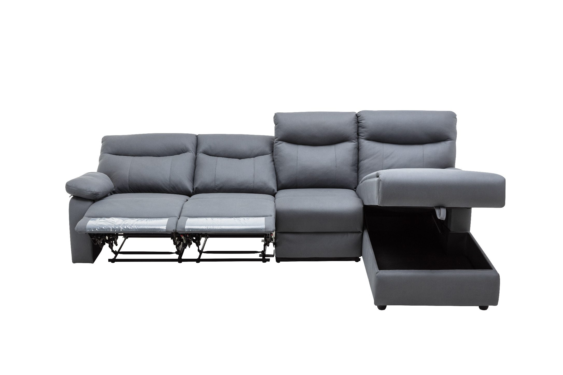 ספה פינתית עם ריקליינרים וארגז מצעים דגם אפולוסה בבד אפור כהה