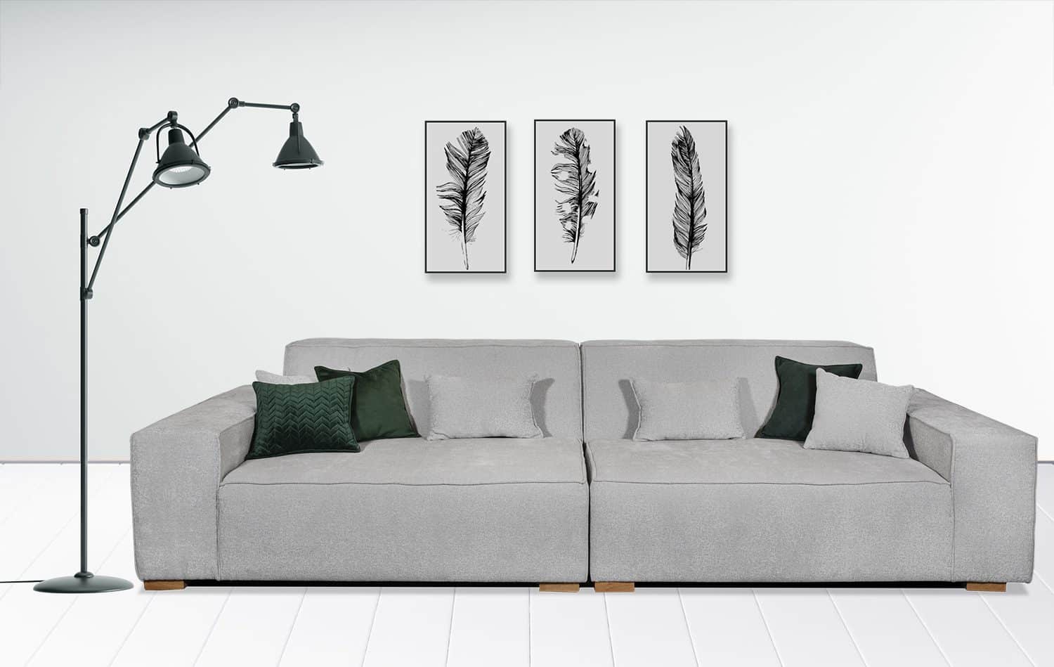 ספה נפתחת למיטה דגם סיאם בבד אפור בהיר באורך 3.00 מ'