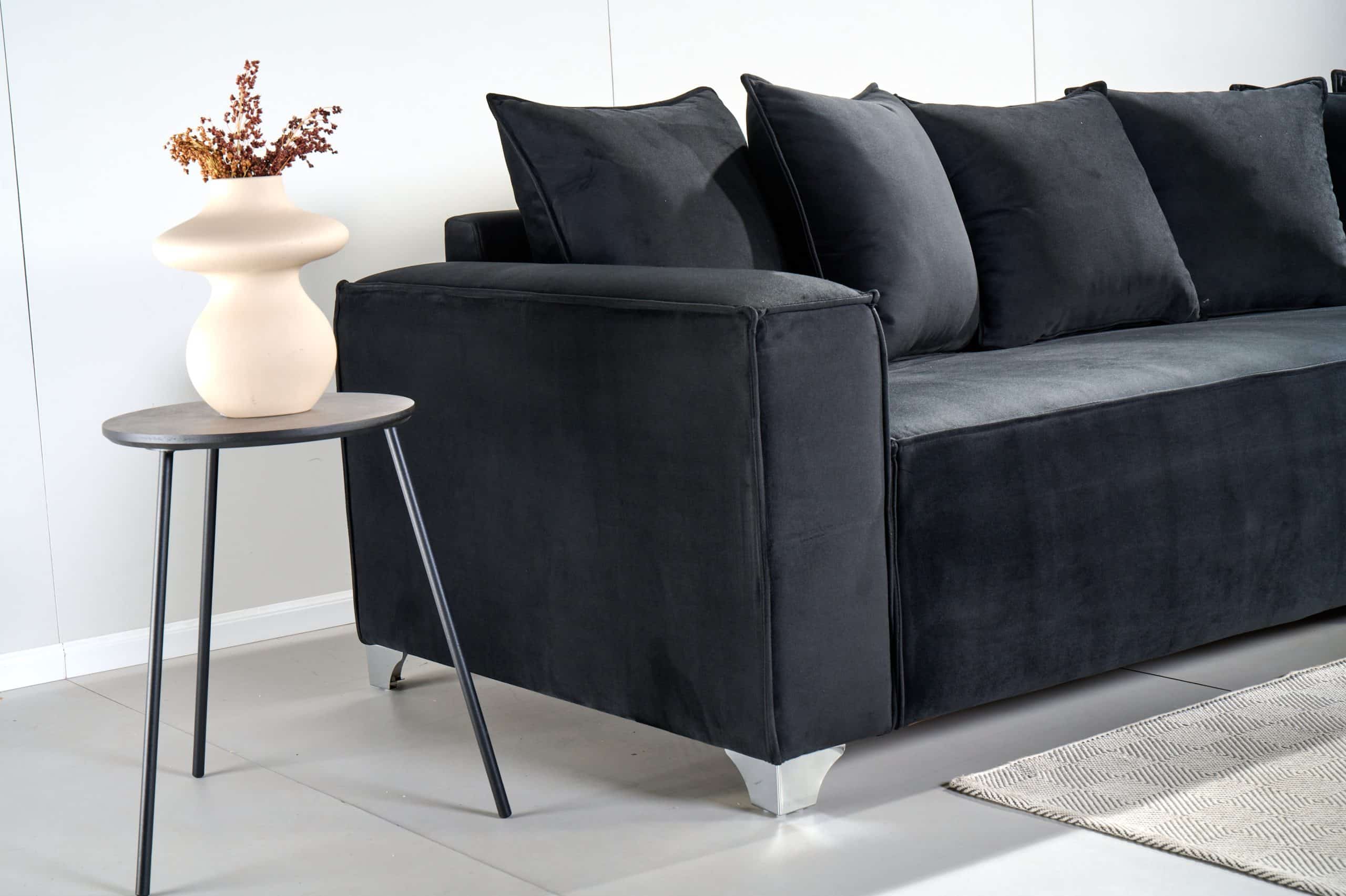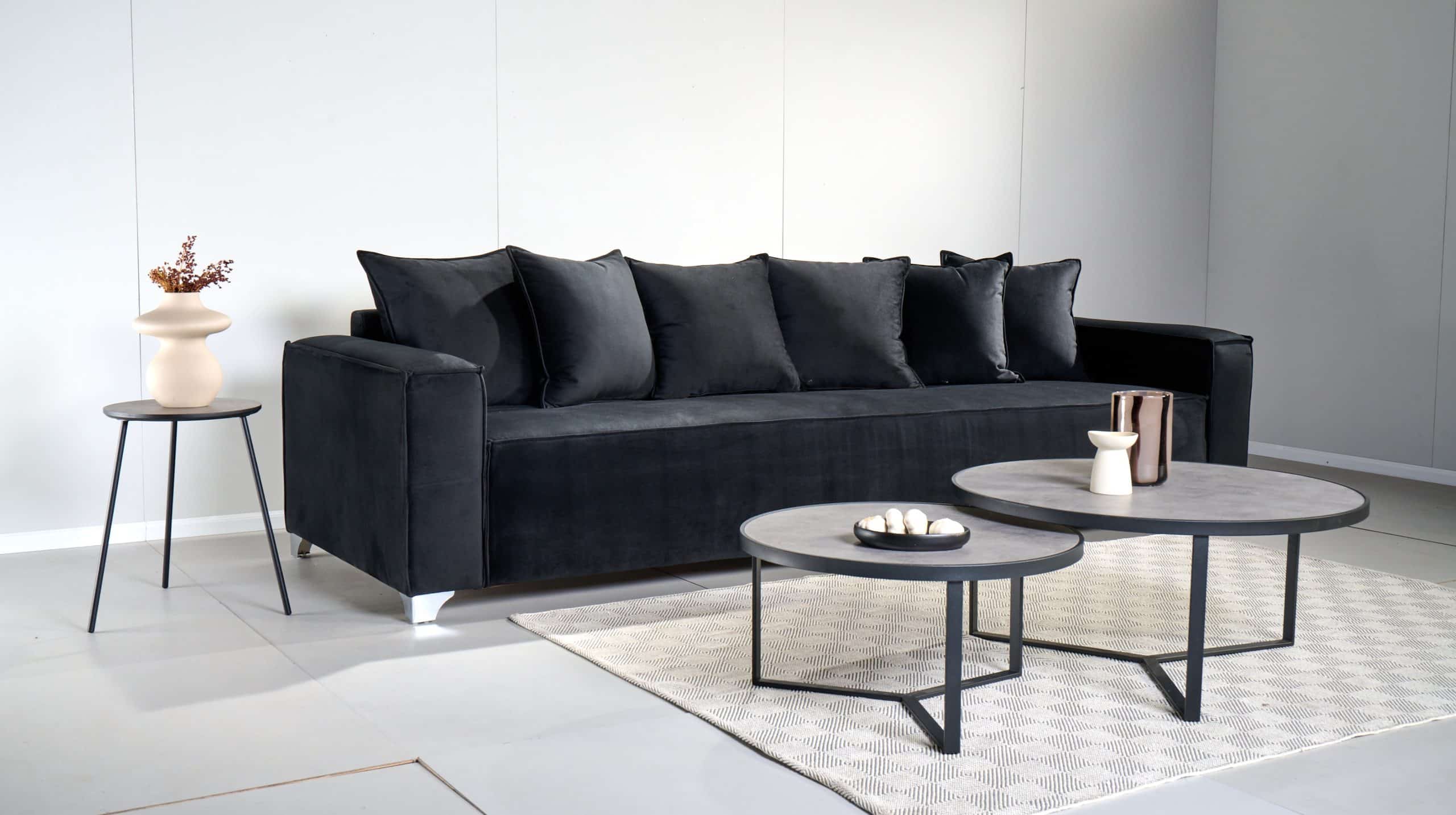 לסלון רגליים שחורות ואלגנטיות ממתכת.