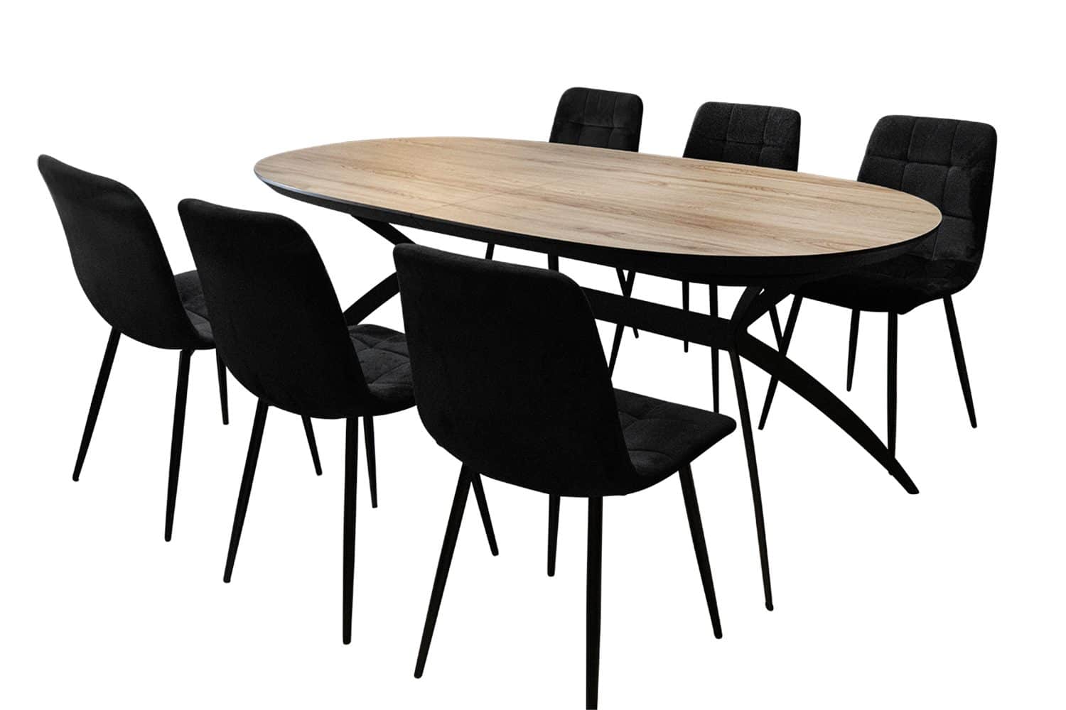 פינת אוכל אובלית דגם סורינו דמוי עץ טבעי + 6 כסאות – 14 סועדים