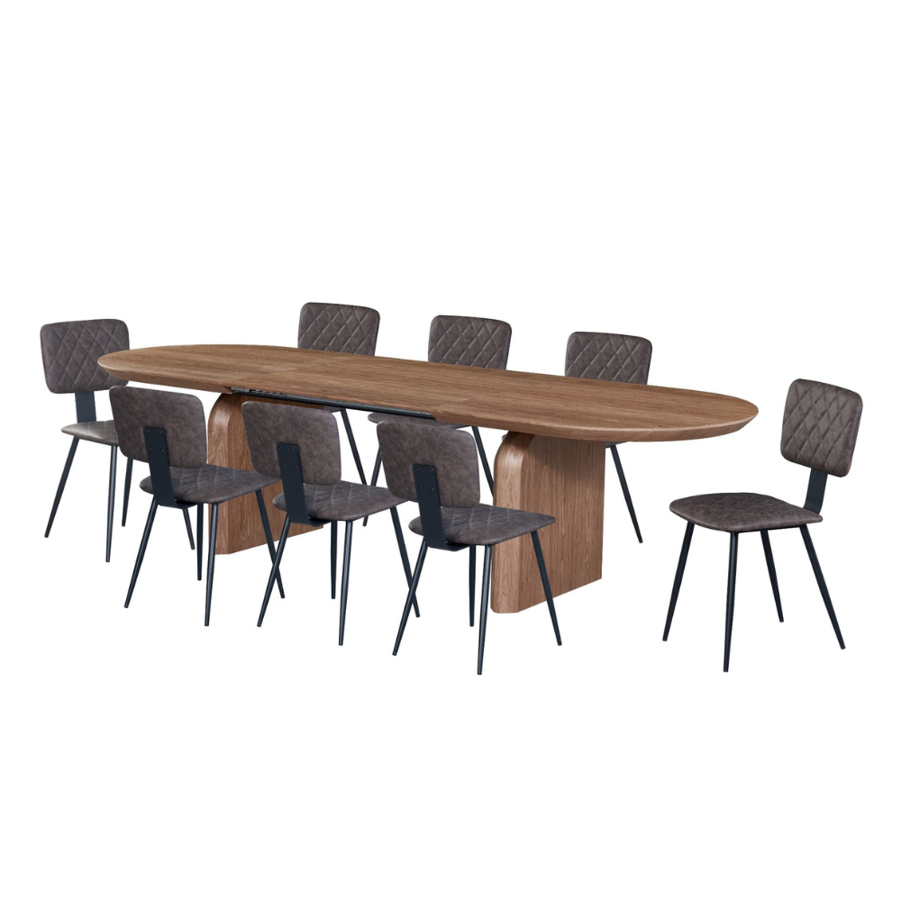 פינת אוכל אליפסה אגוז אמריקאי דגם סולאן + 6 כסאות דגם סנדרין – 12 סועדים