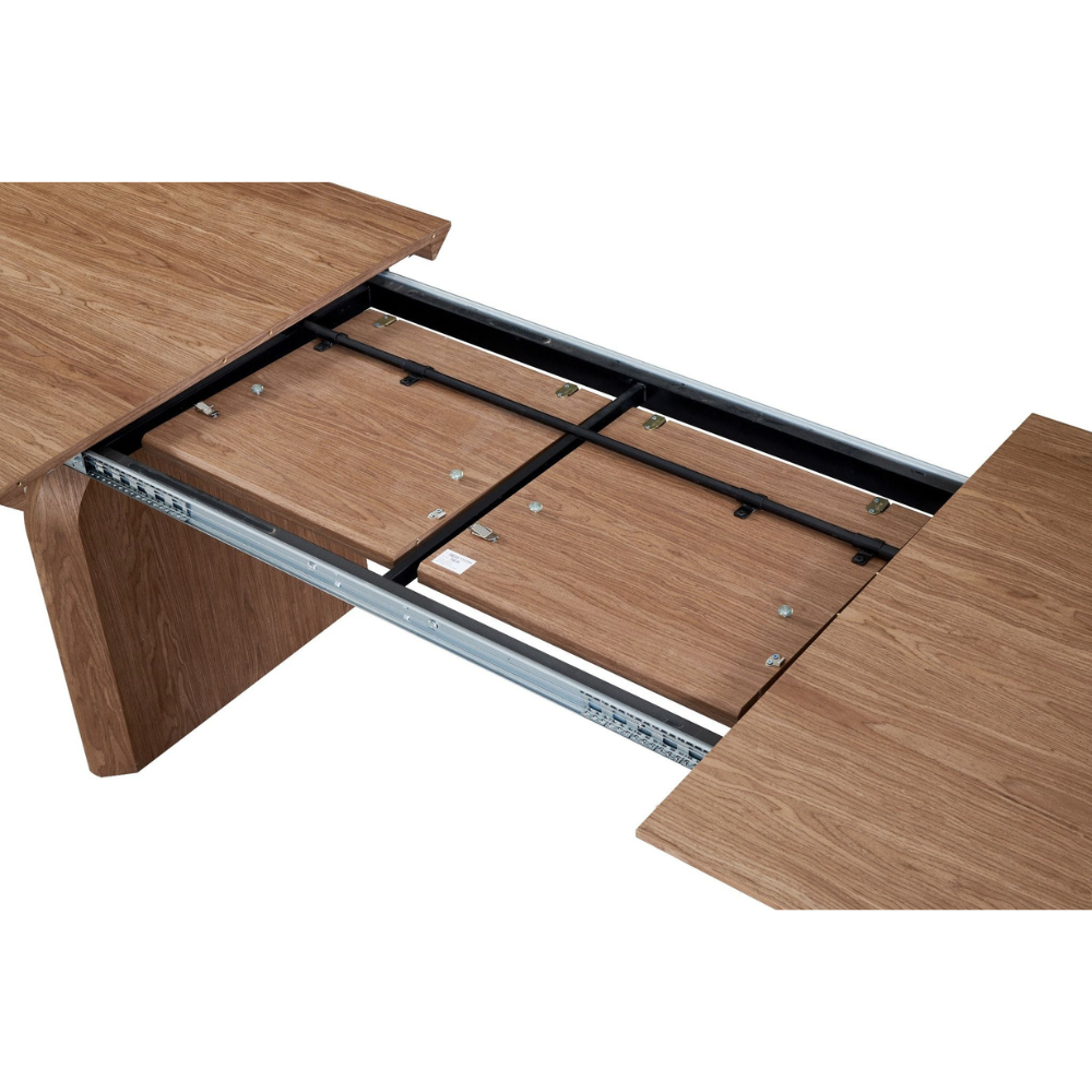 השולחן מצויד במנגנון פתיחה איכותי ונוח, וניתן להארכה עד לאורך של 3 מטר, באמצעות שתי הארכות הנפתחות מהמרכז בפתיחת ספר. מנגנון זה מאפשר מעבר חלק משולחן יומיומי לשולחן אירוח גדול, תוך שמירה על מראה אחיד, נקי והרמוני גם במצב סגור.