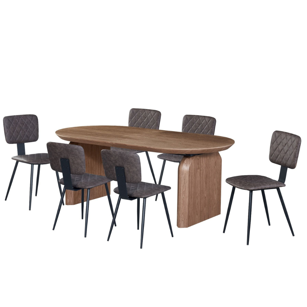 פינת אוכל אובלית נפתחת דגם טומסו + 6 כיסאות – אגוז אמריקאי