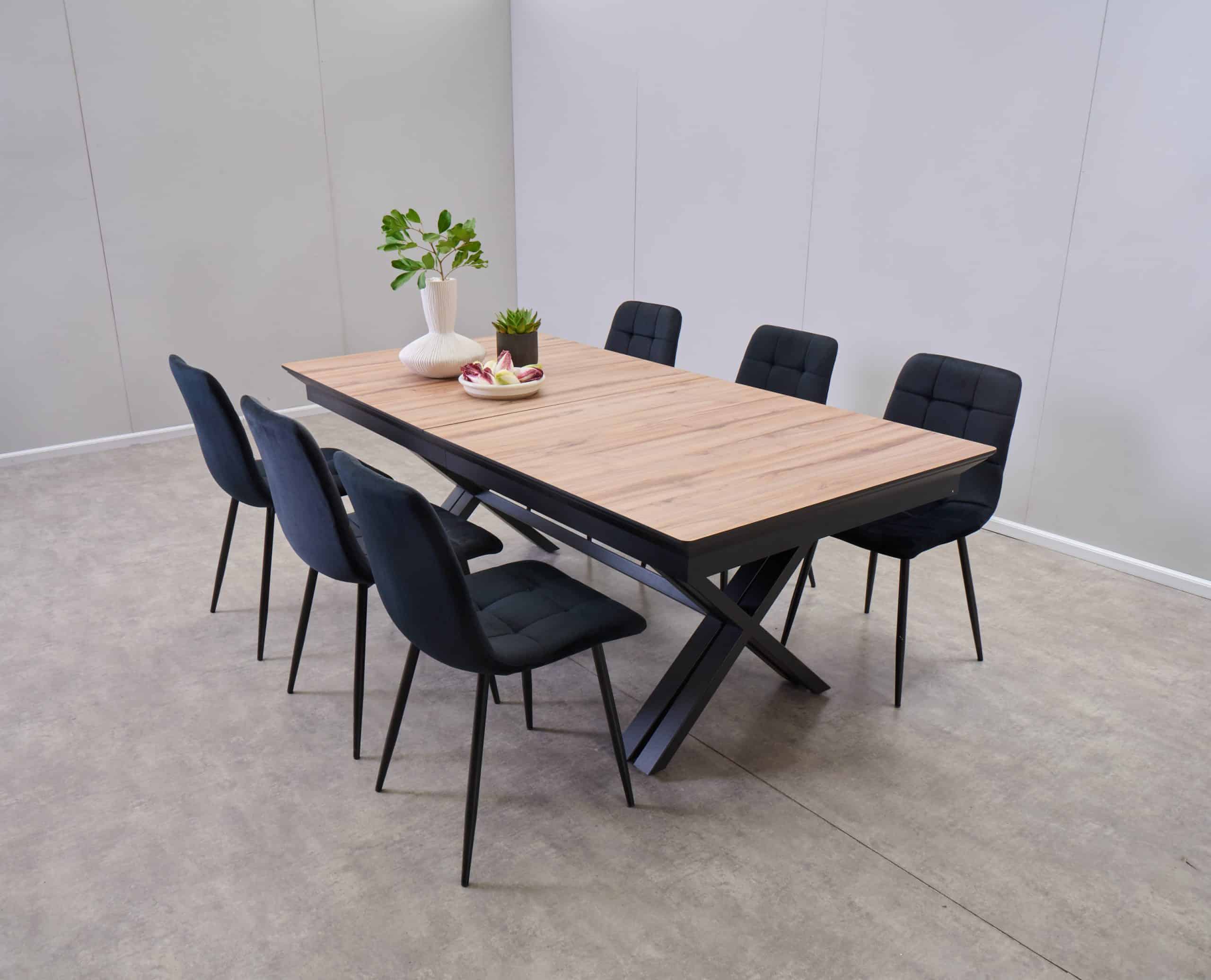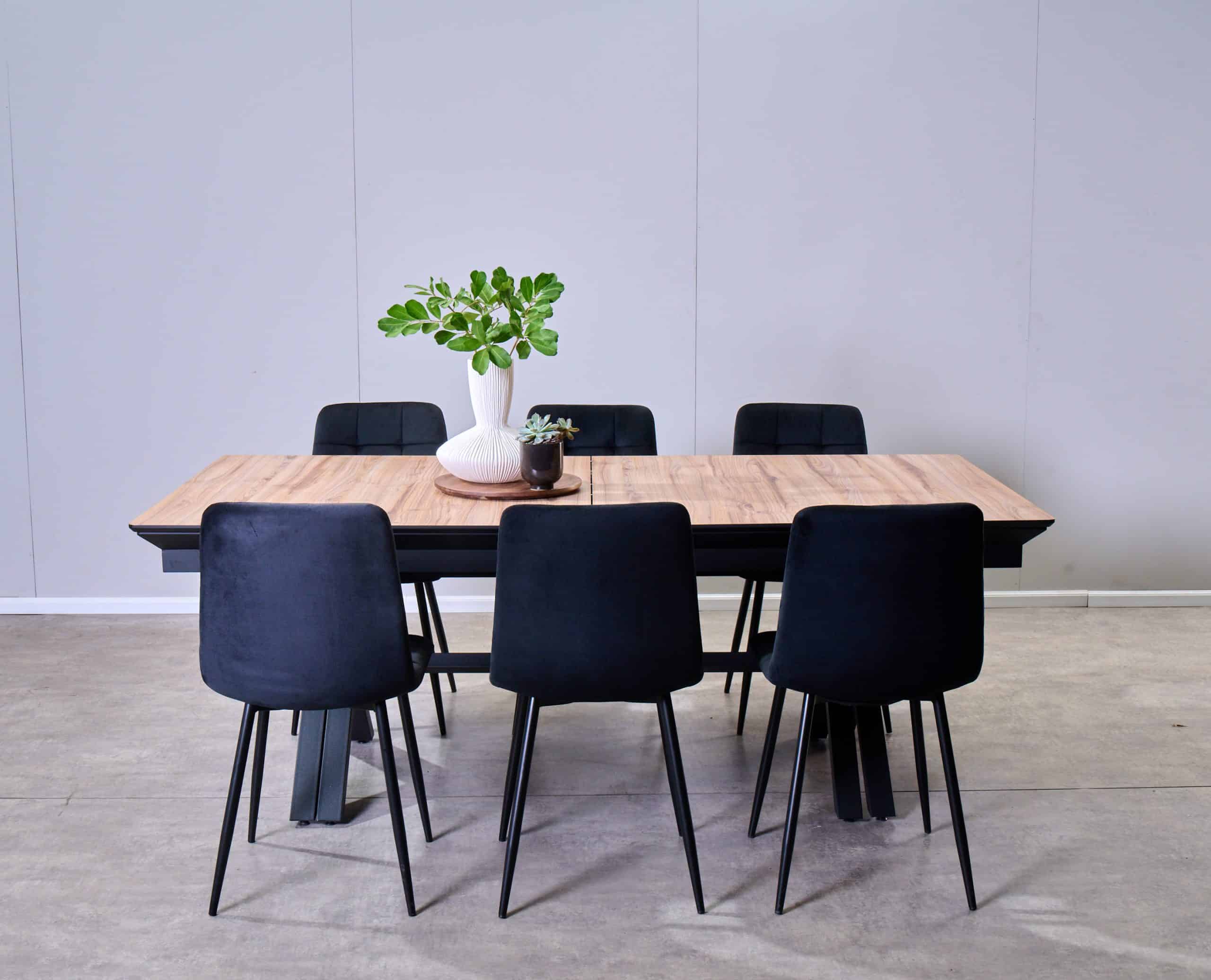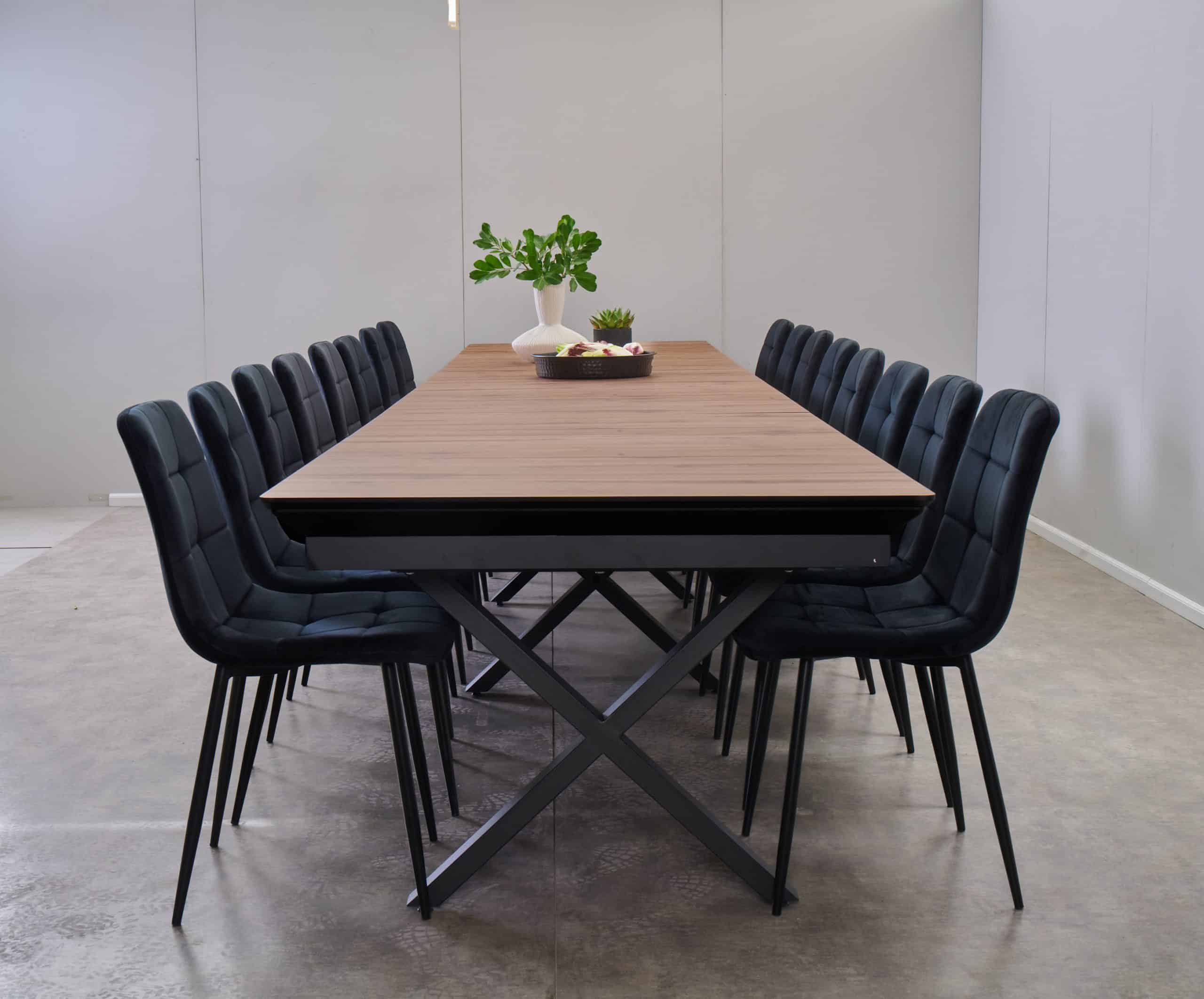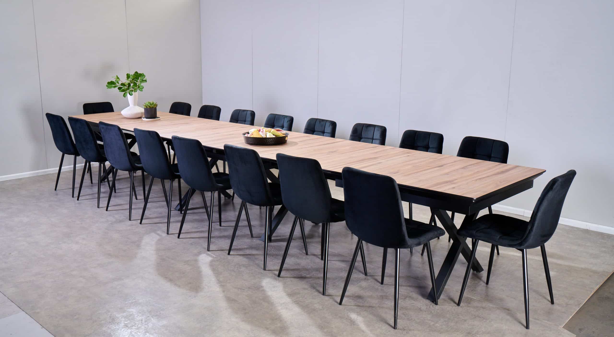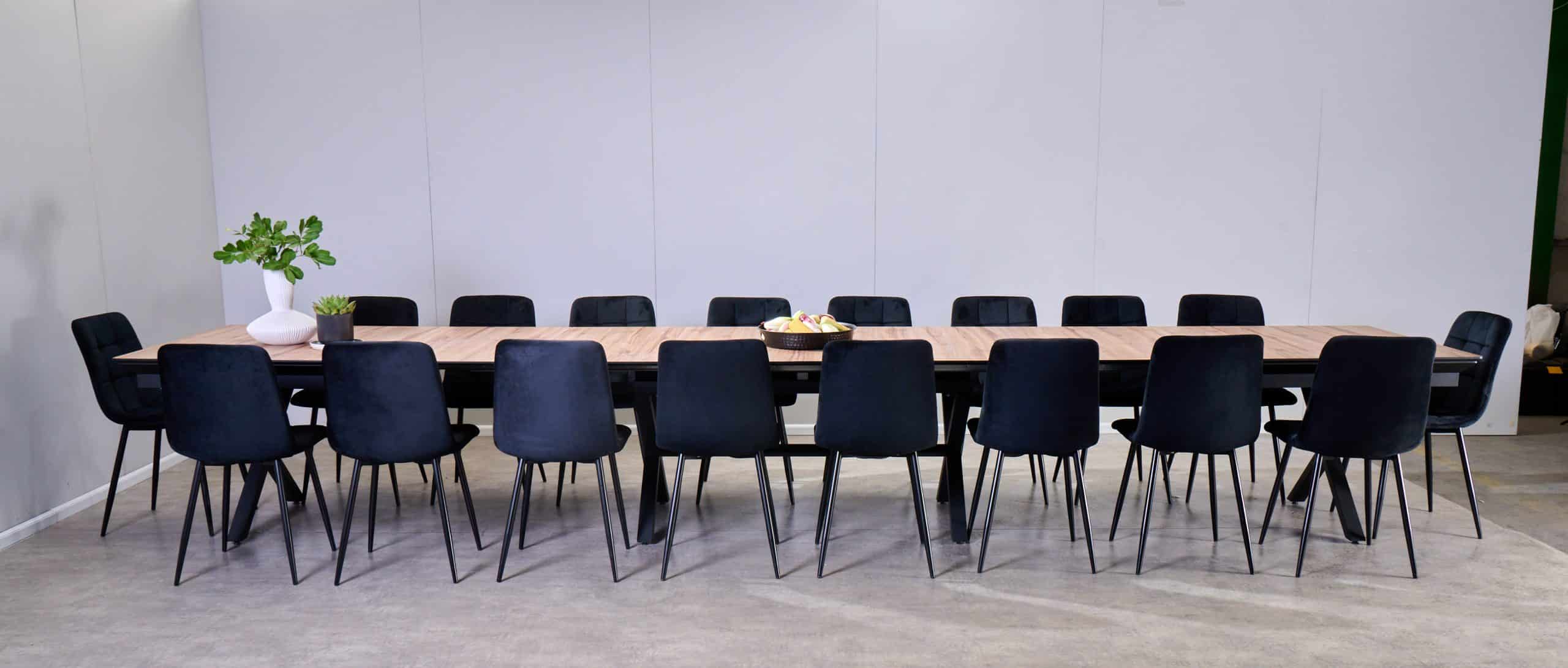 פינת אוכל דמוי עץ טבעי נפתחת ל-5 מטר דגם גאינט + 6 כסאות – 24 סועדים