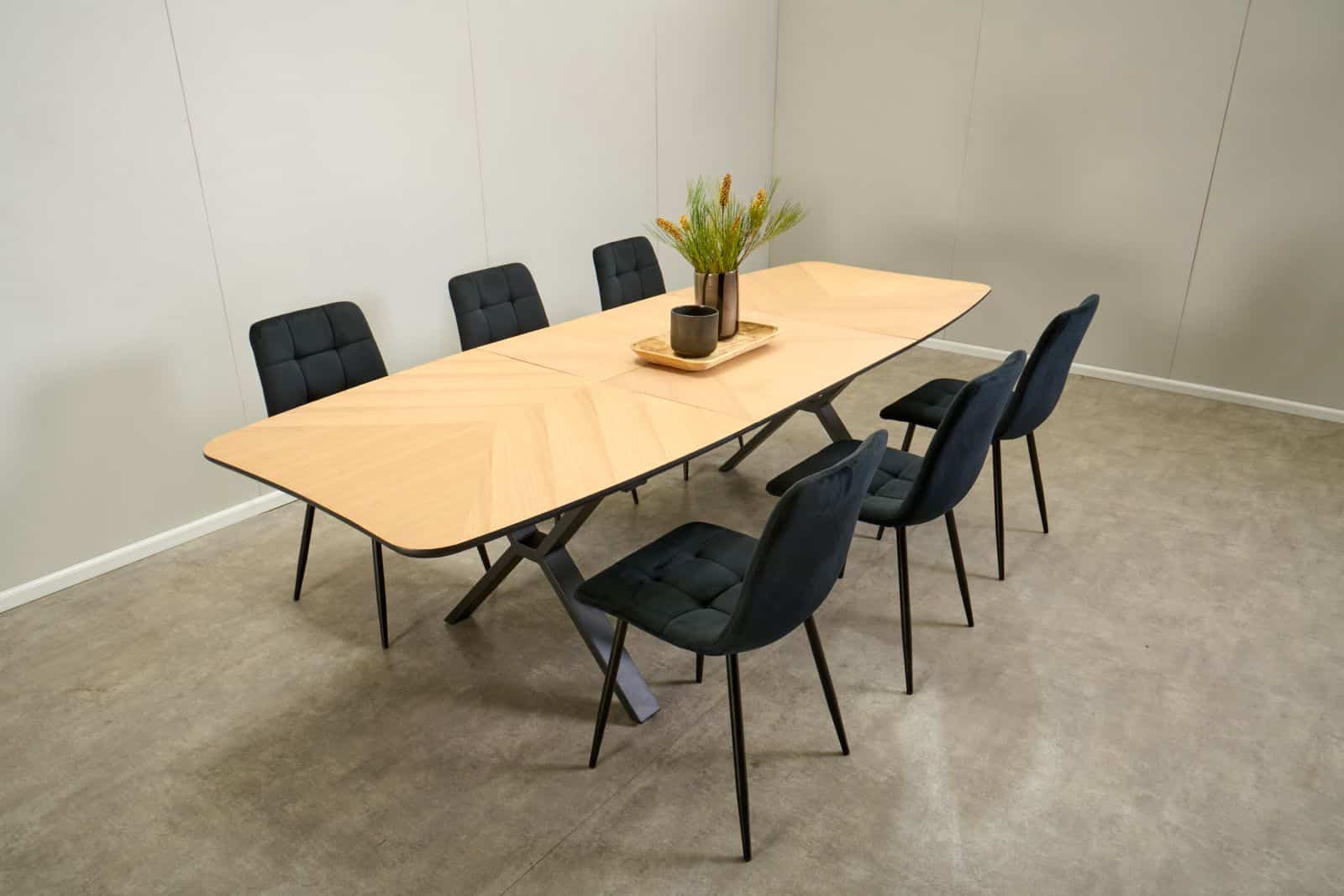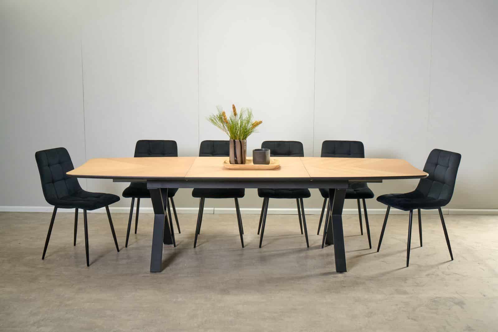 פינת אוכל אליפסה דמוי עץ טבעי דגם סולאן + 6 כסאות דגם סנדרין – 12 סועדים