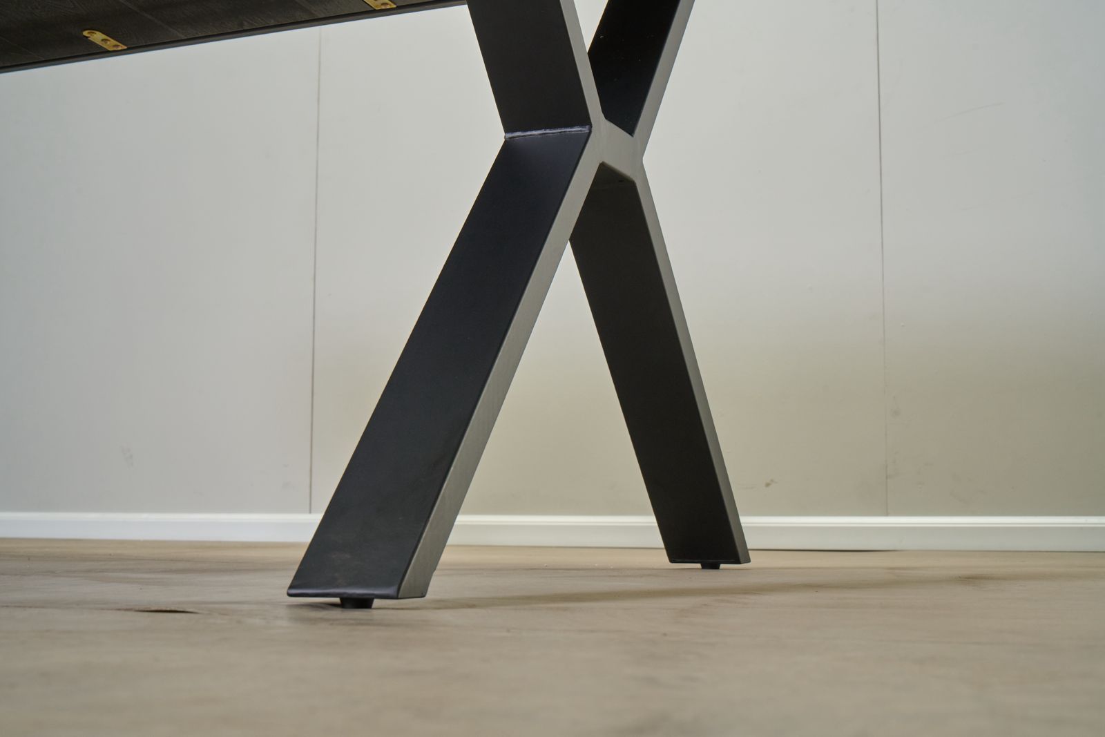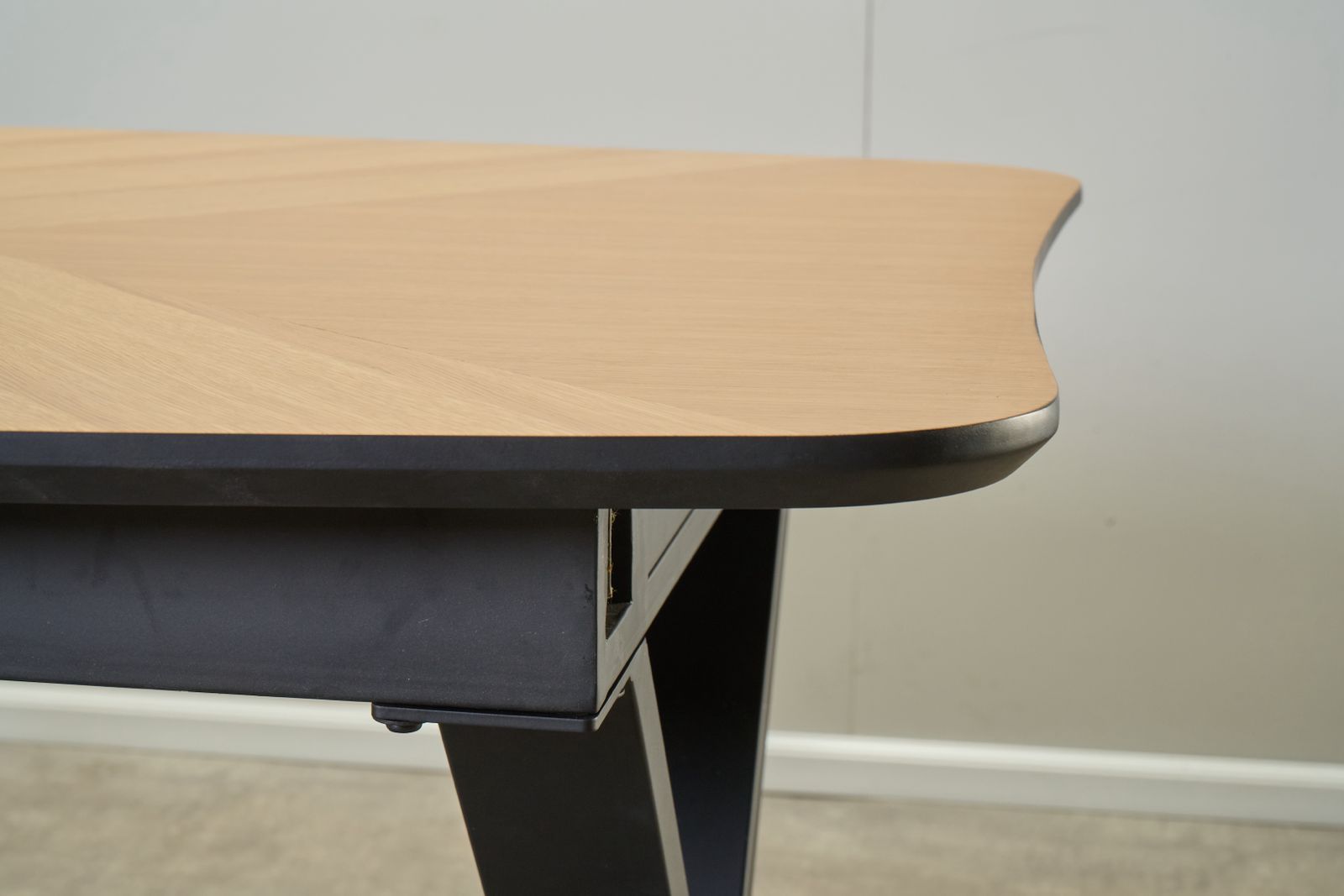 פינת האוכל בציפוי פורניר מדמוי עץ מלא, ורגלי השולחן עשויות מתכת עם שכבת פלסטיק המגינה על הרגליות למניעת שחיקה.