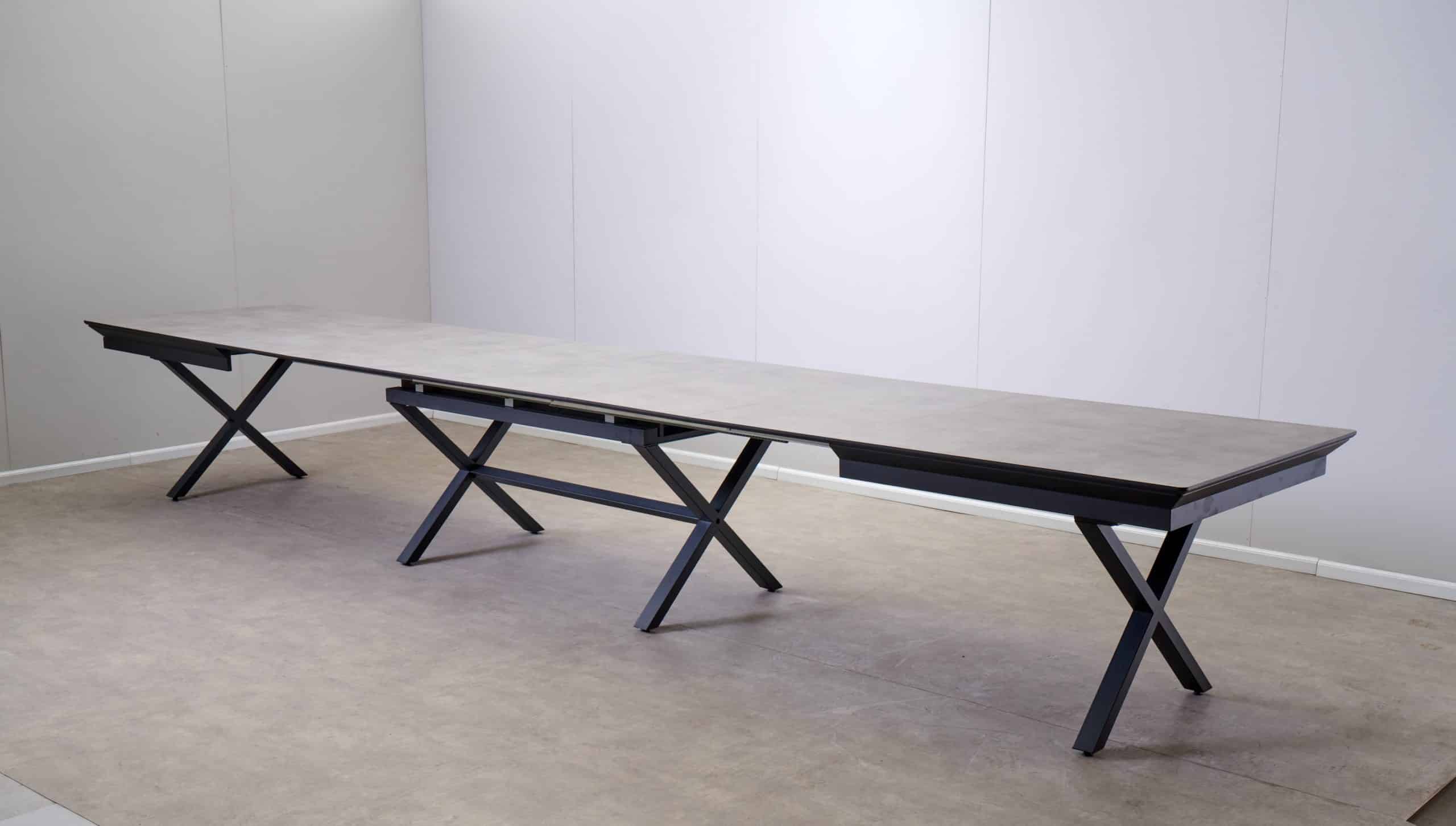 השולחן באורך 2 מ’ ובעל 6 הארכות של 50 ס”מ נוספים ואורך מלא של 5 מ’.