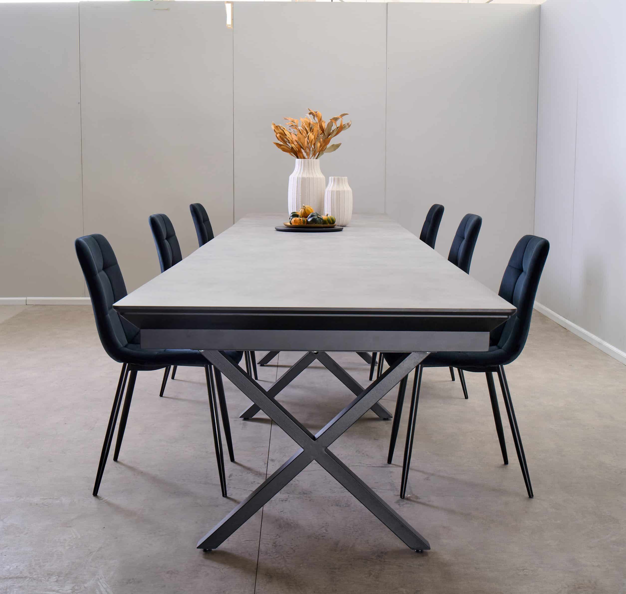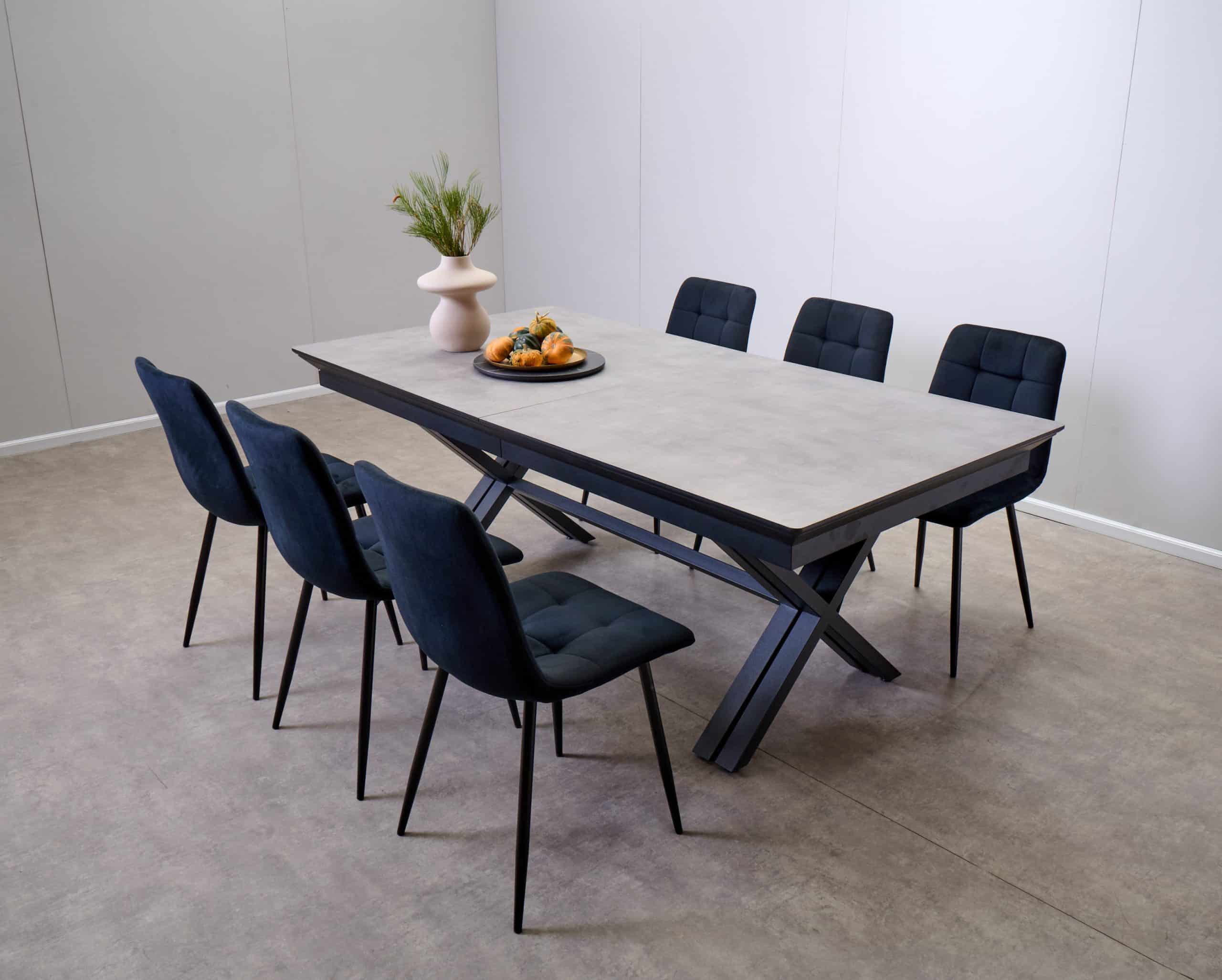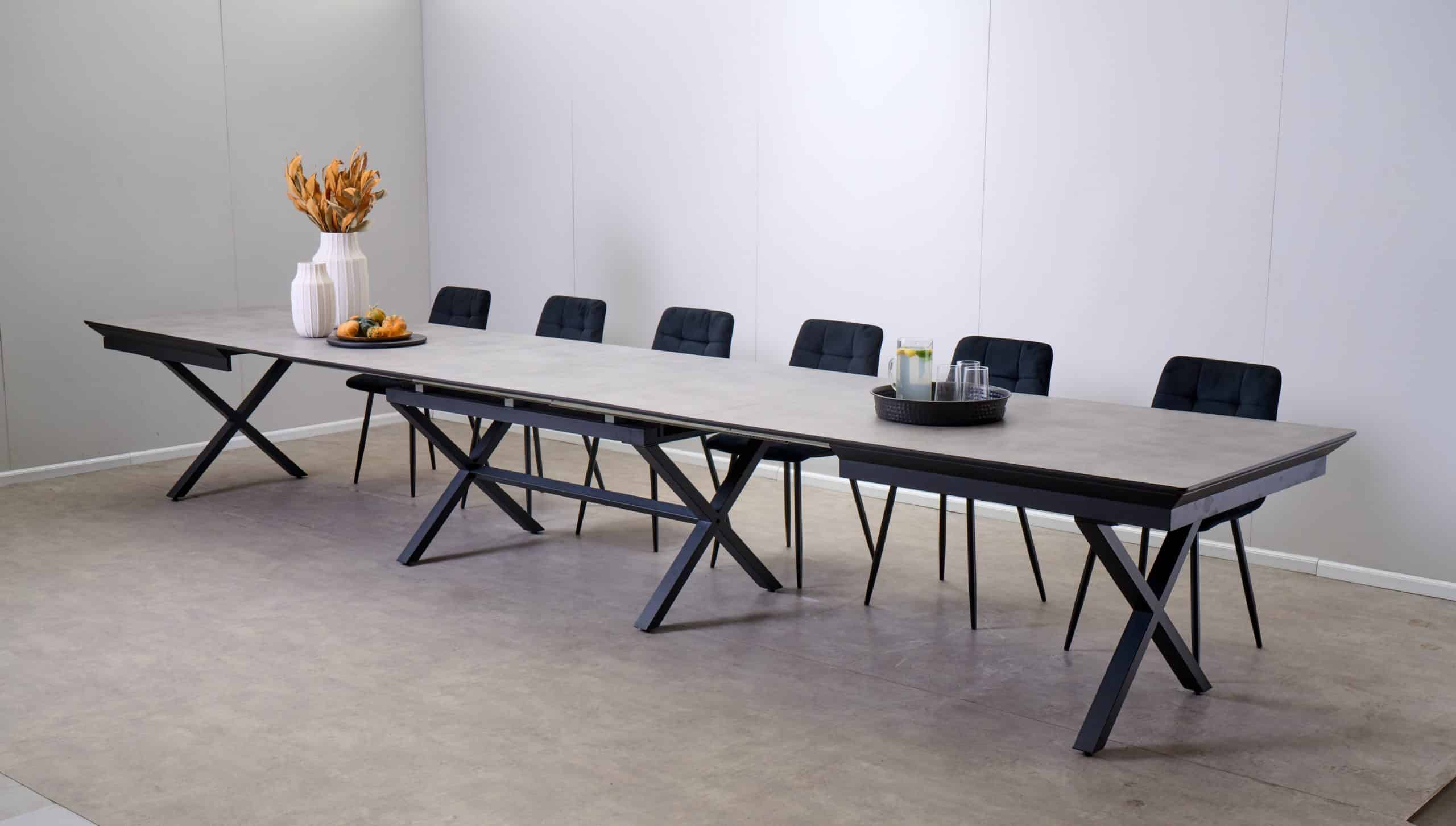 פינת אוכל דמוי בטון נפתחת ל-5 מטר דגם גאינט + 6 כסאות – 24 סועדים