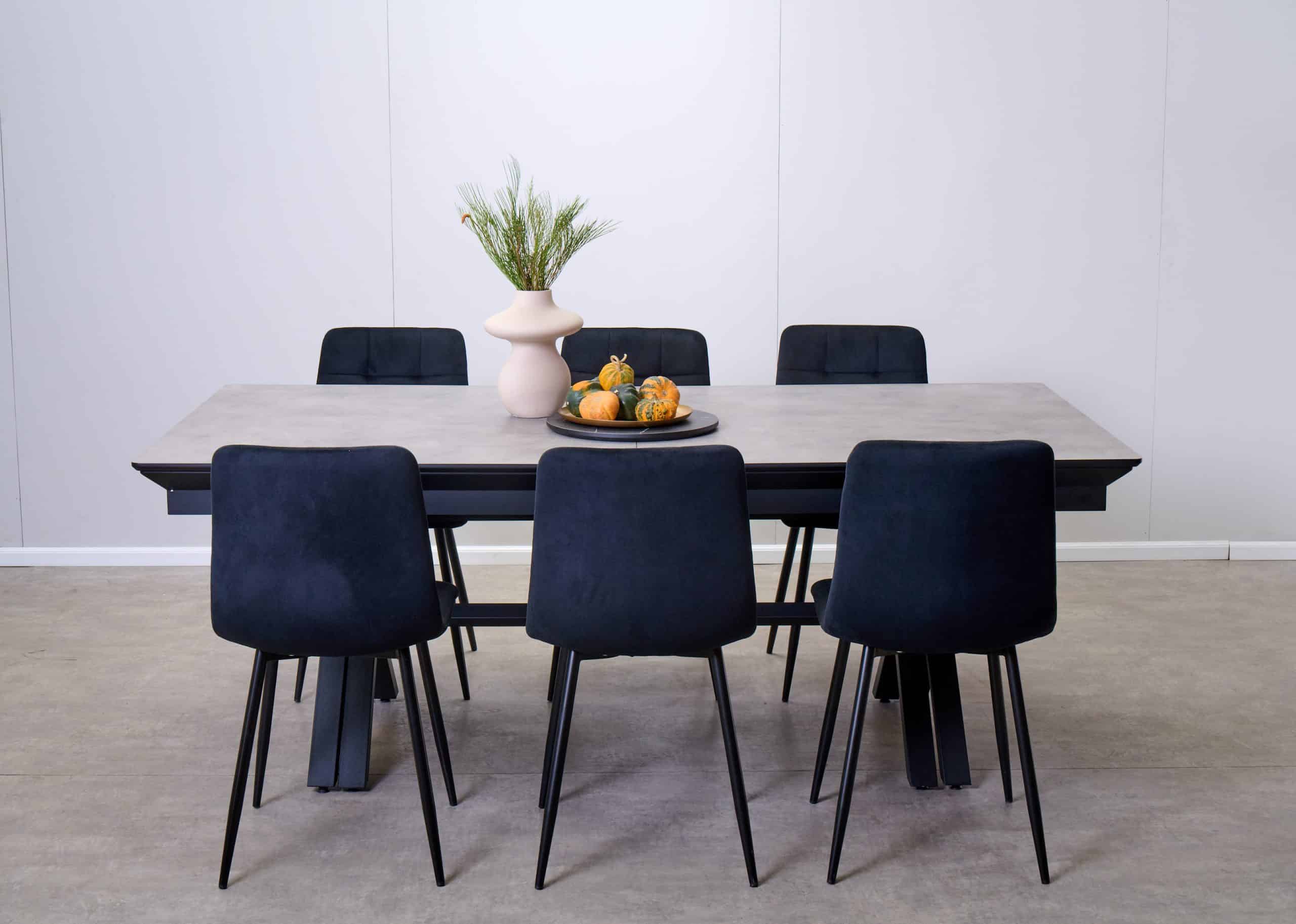 פינת אוכל מלבנית דמוי בטון דגם אנזו + 6 כסאות – 14 סועדים