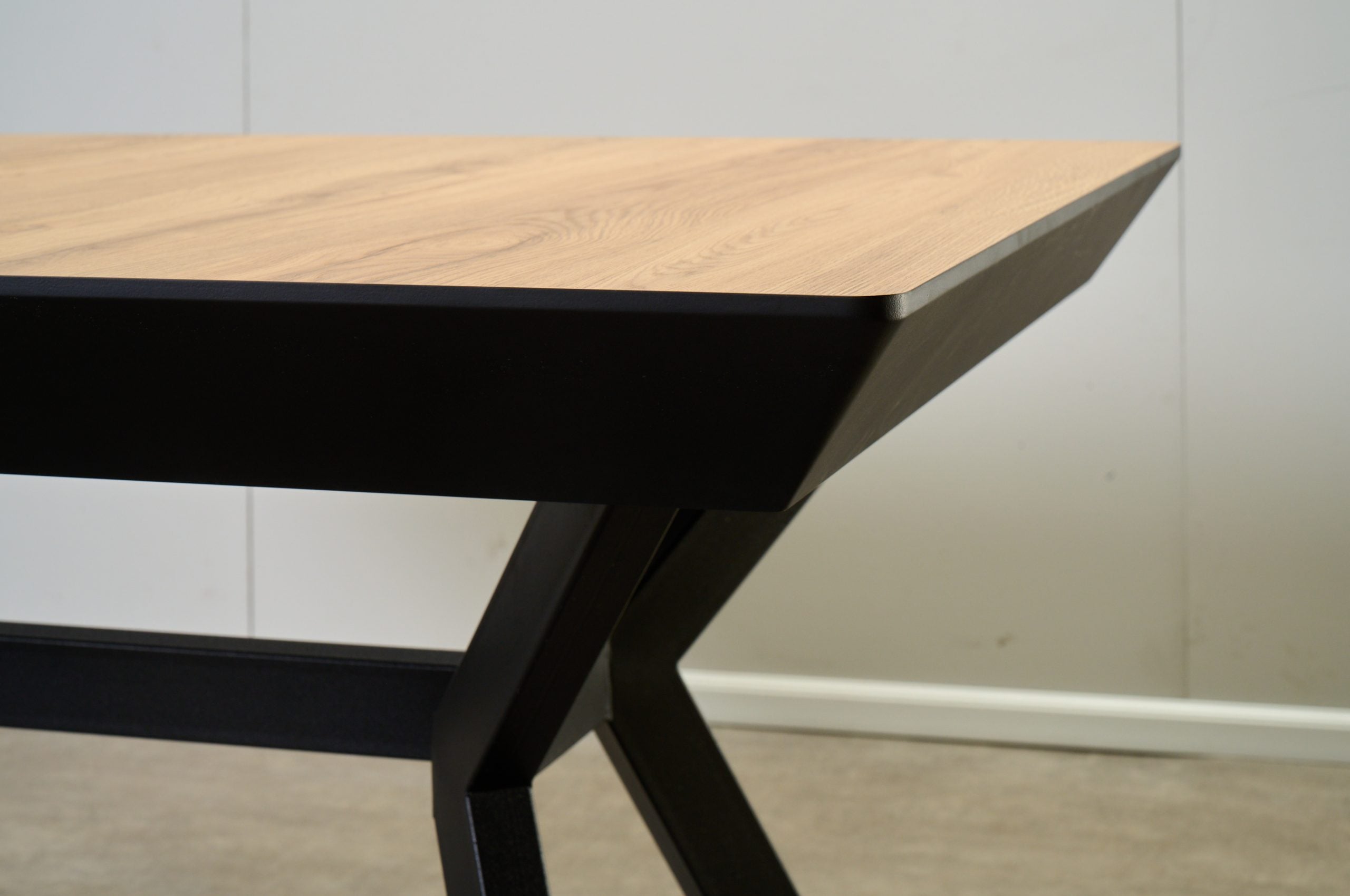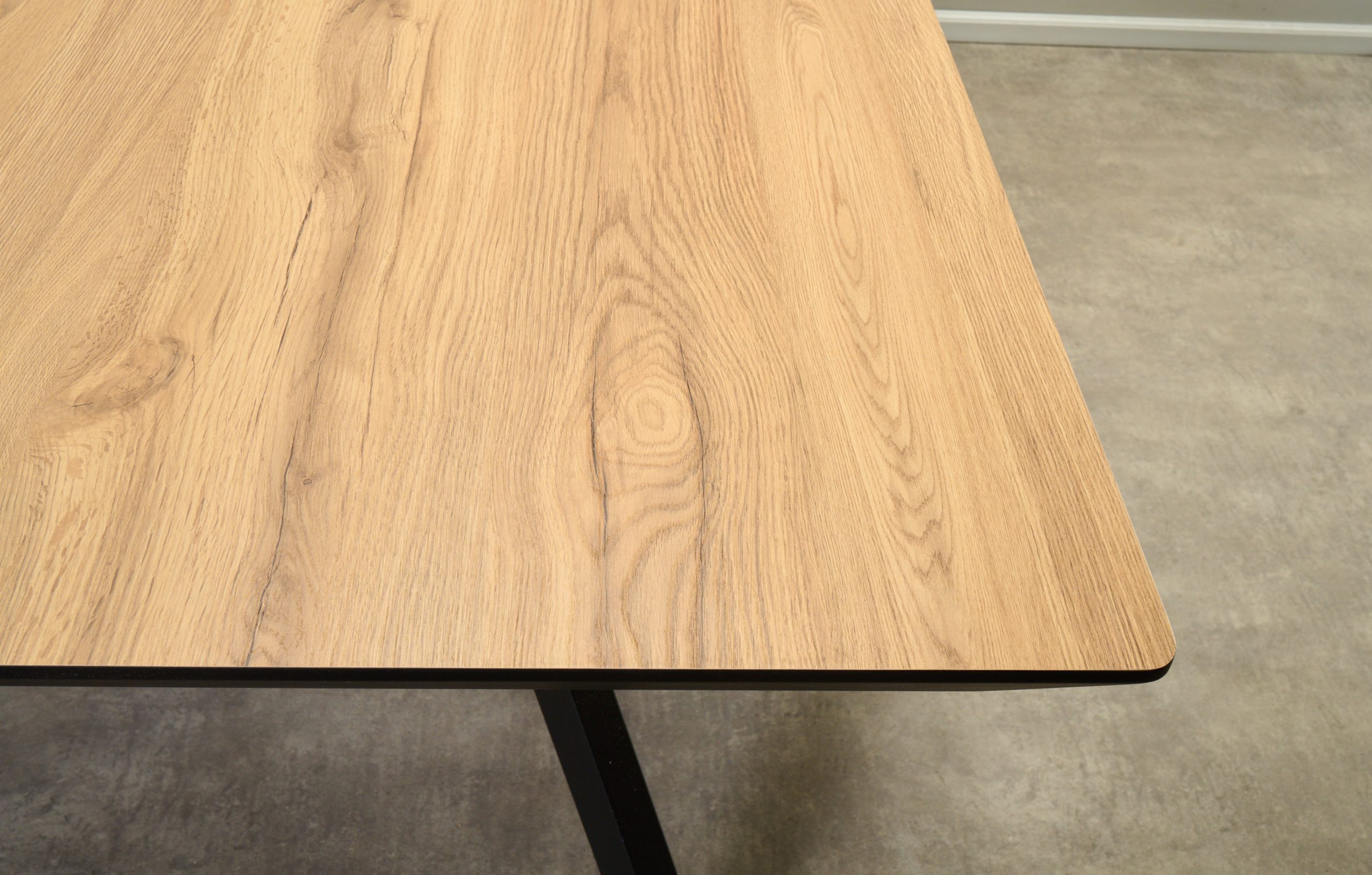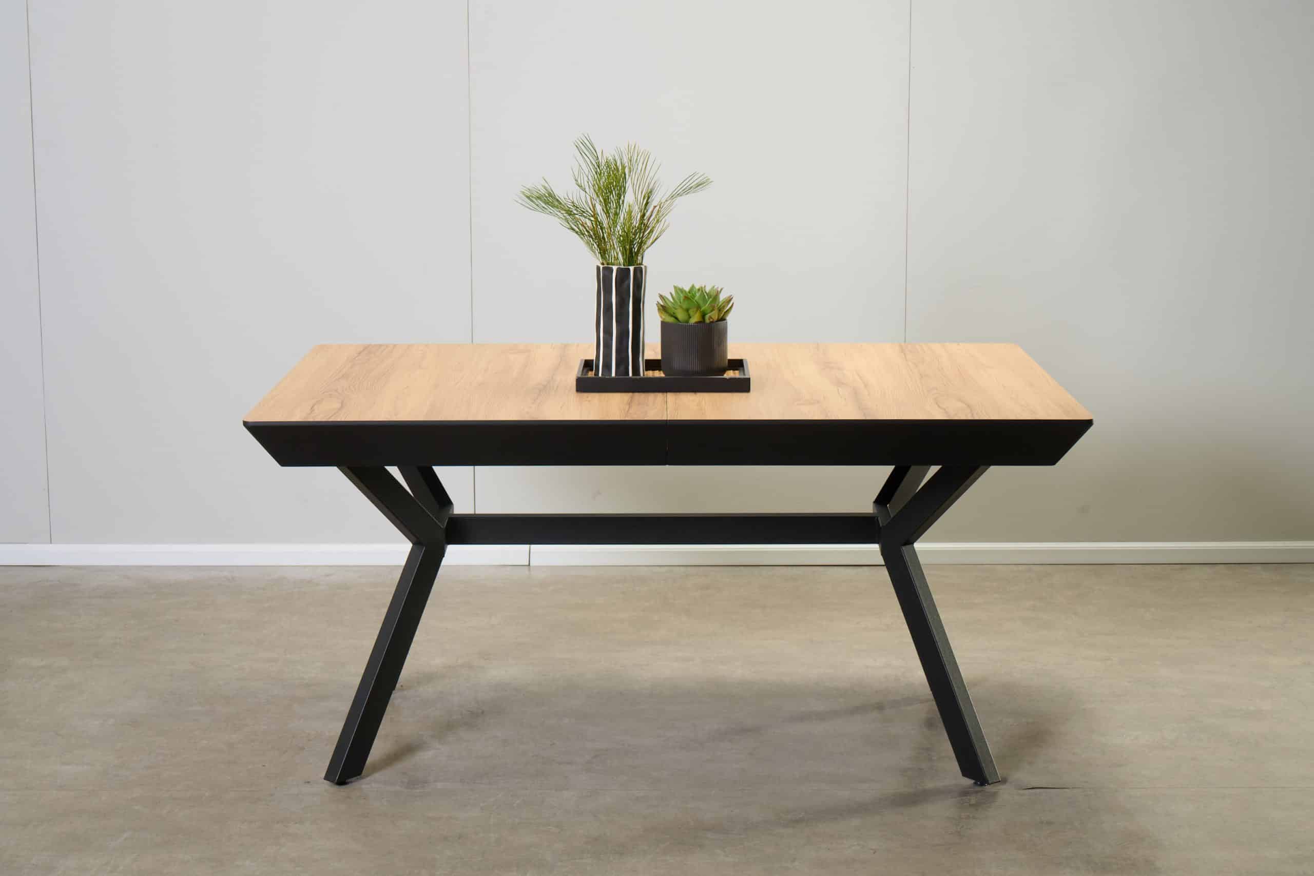 שולחן האוכל עשוי MDF בציפוי למינציה דמוי עץ טבעי, ורגלי השולחן עשויים ממתכת עם גימור צביעה אלקטרוסטטי נגד חלודה בצבע שחור.