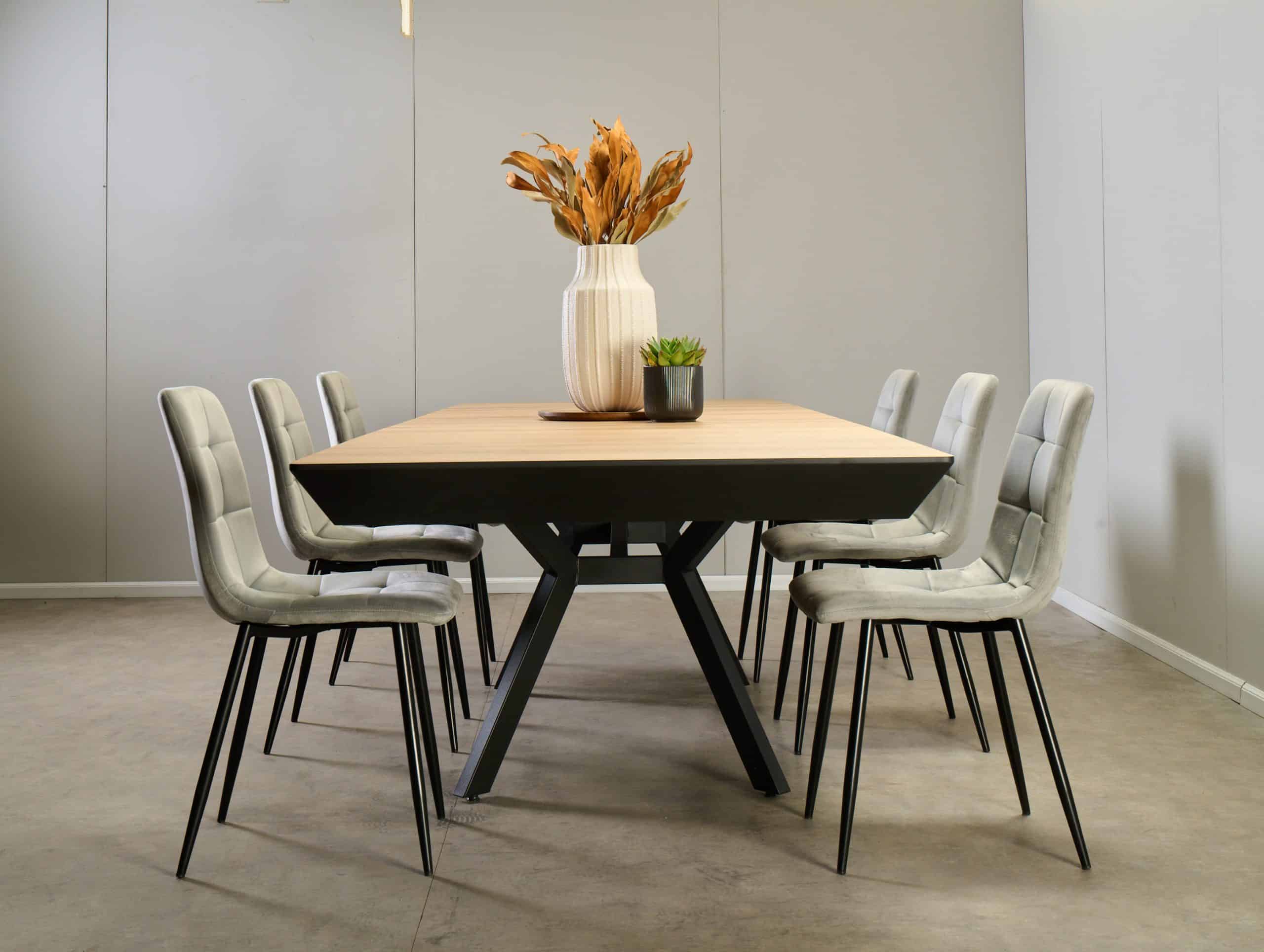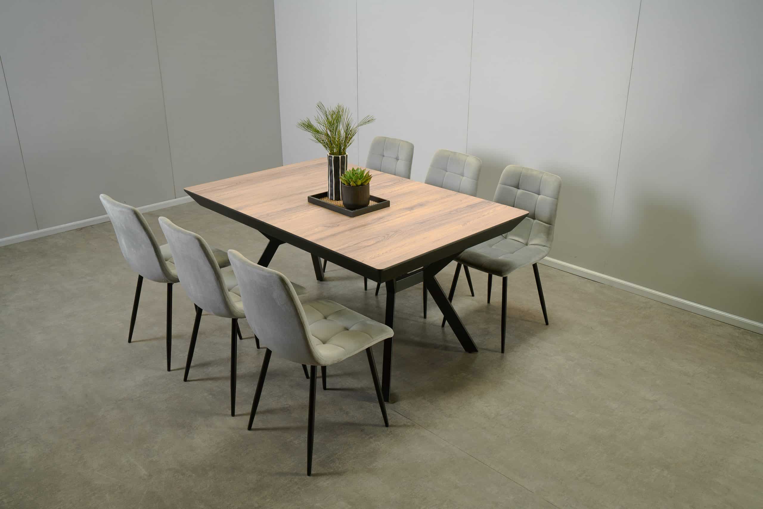 פינת אוכל מלבנית דמוי בטון דגם אבניו + 6 כסאות – 10 סועדים