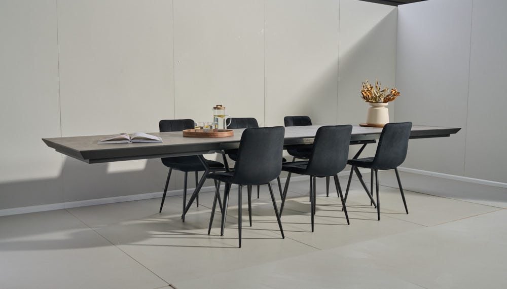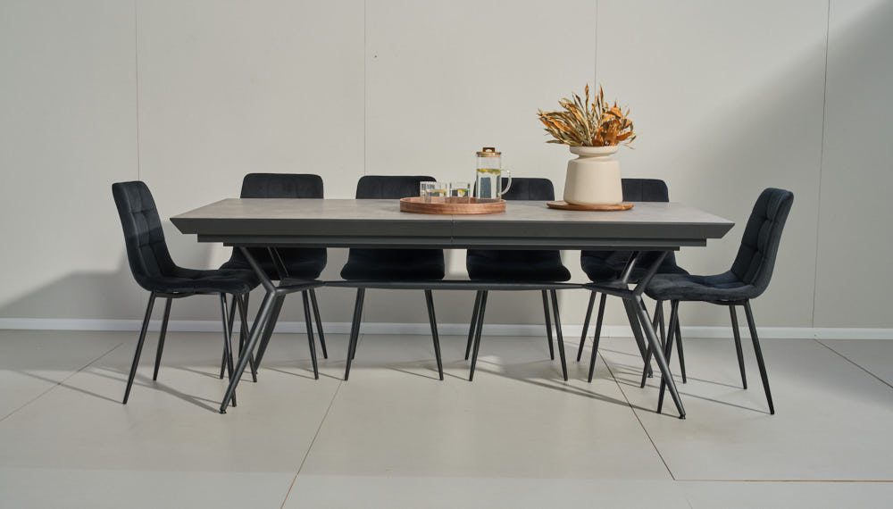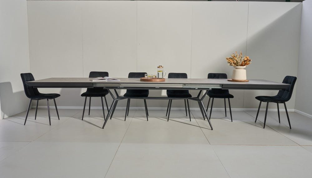 פינת אוכל מלבנית דגם לארגו דמוי בטון + 6 כסאות – 18 סועדים