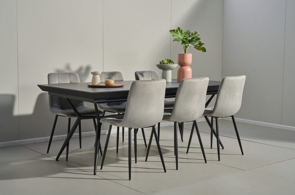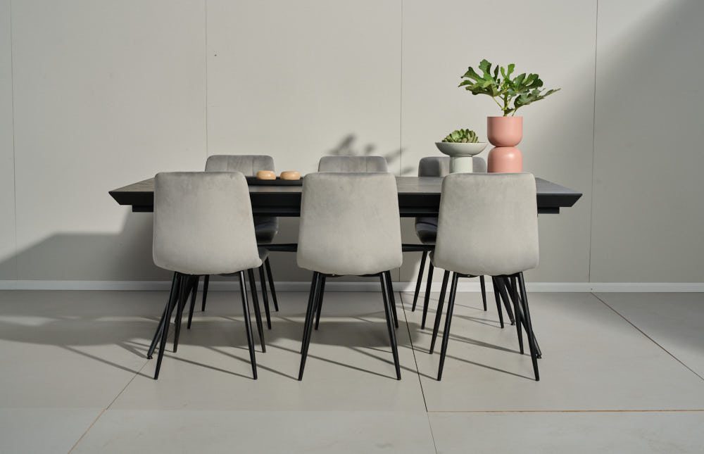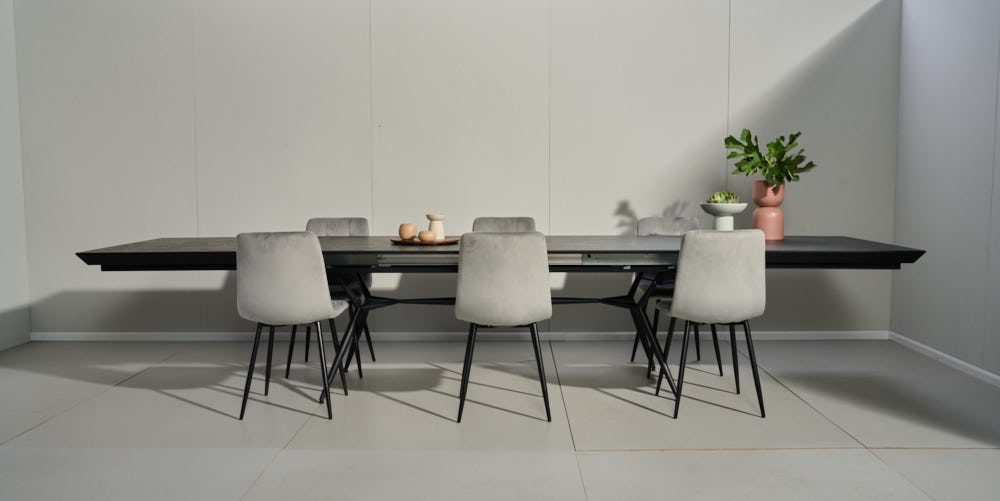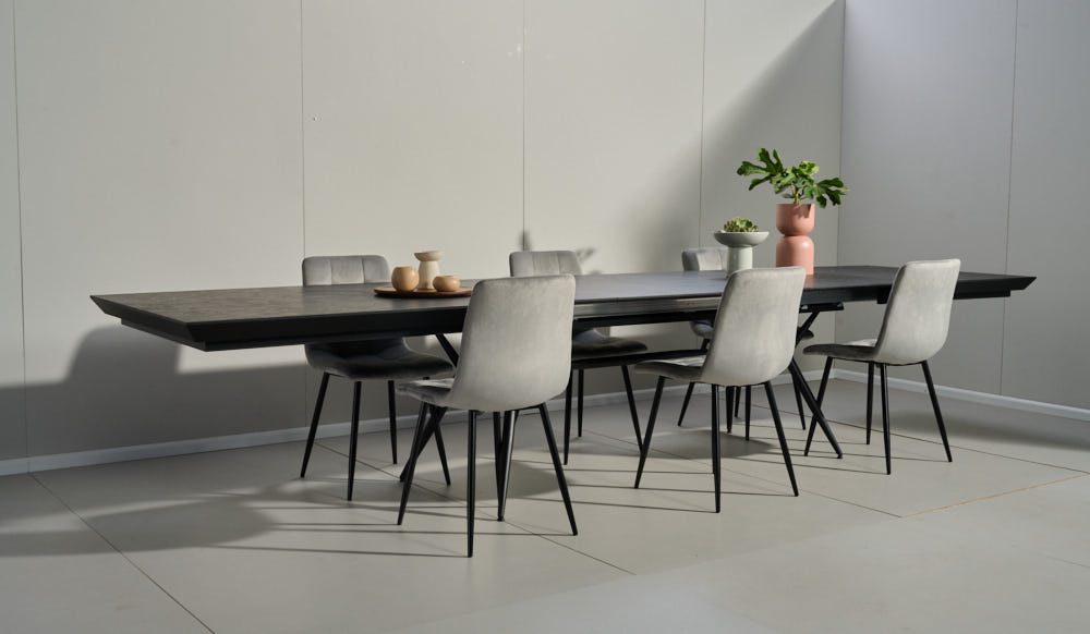 פינת אוכל מלבנית דגם לארגו דמוי שיש שחור + 6 כסאות – 18 סועדים