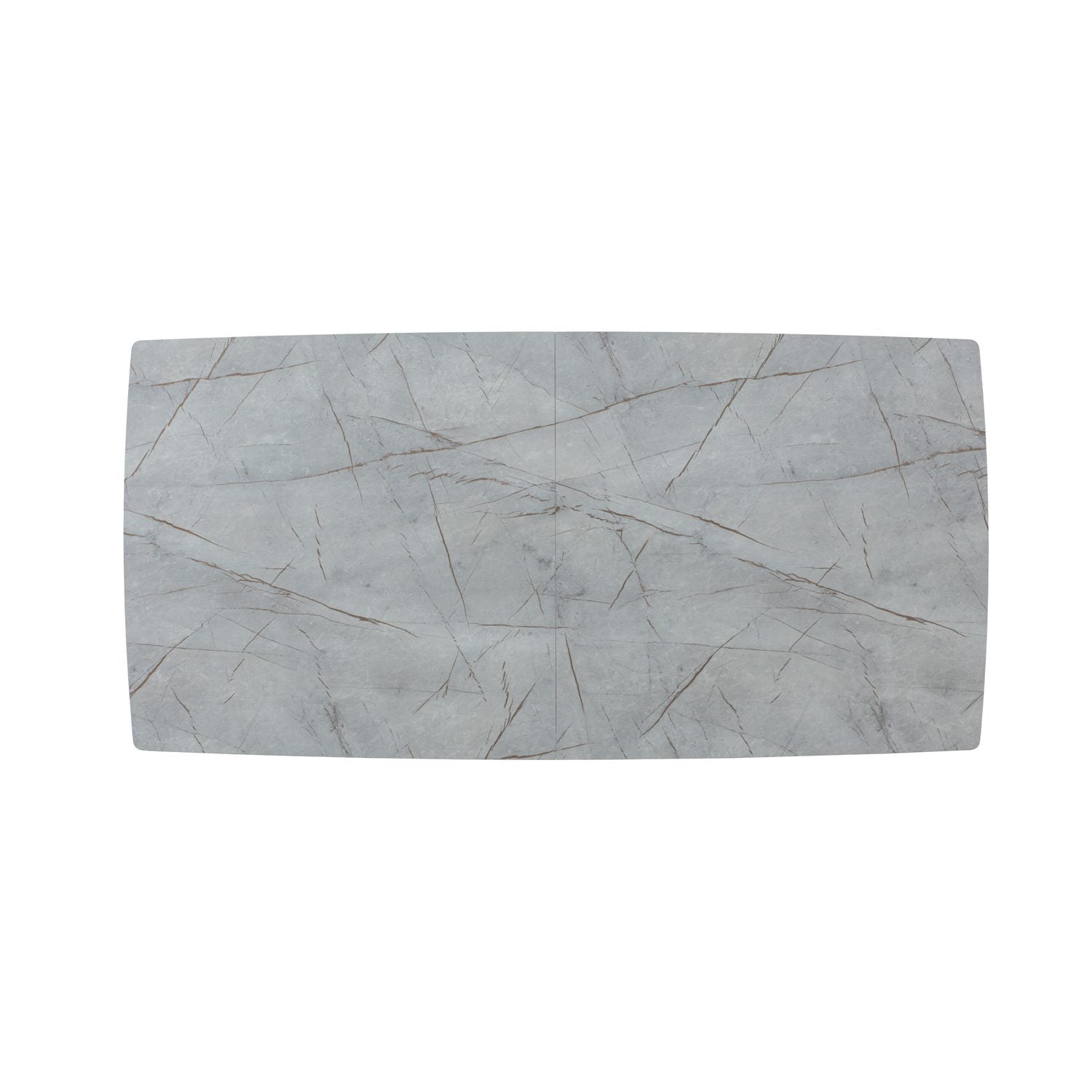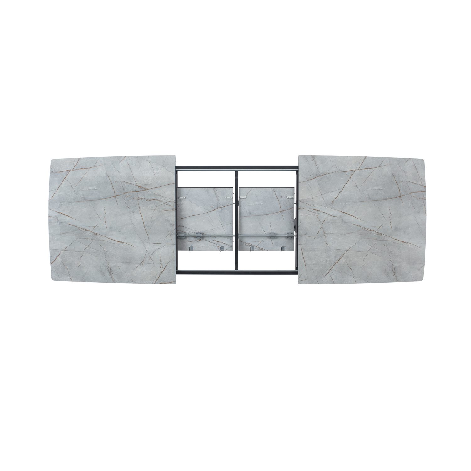 שולחן האוכל עשוי MDF בציפוי למינציה דמוי שיש אפור מוזהב מבריק , ורגלי השולחן עשויים ממתכת עם גימור צביעה אלקטרוסטטי נגד חלודה בצבע שחור.