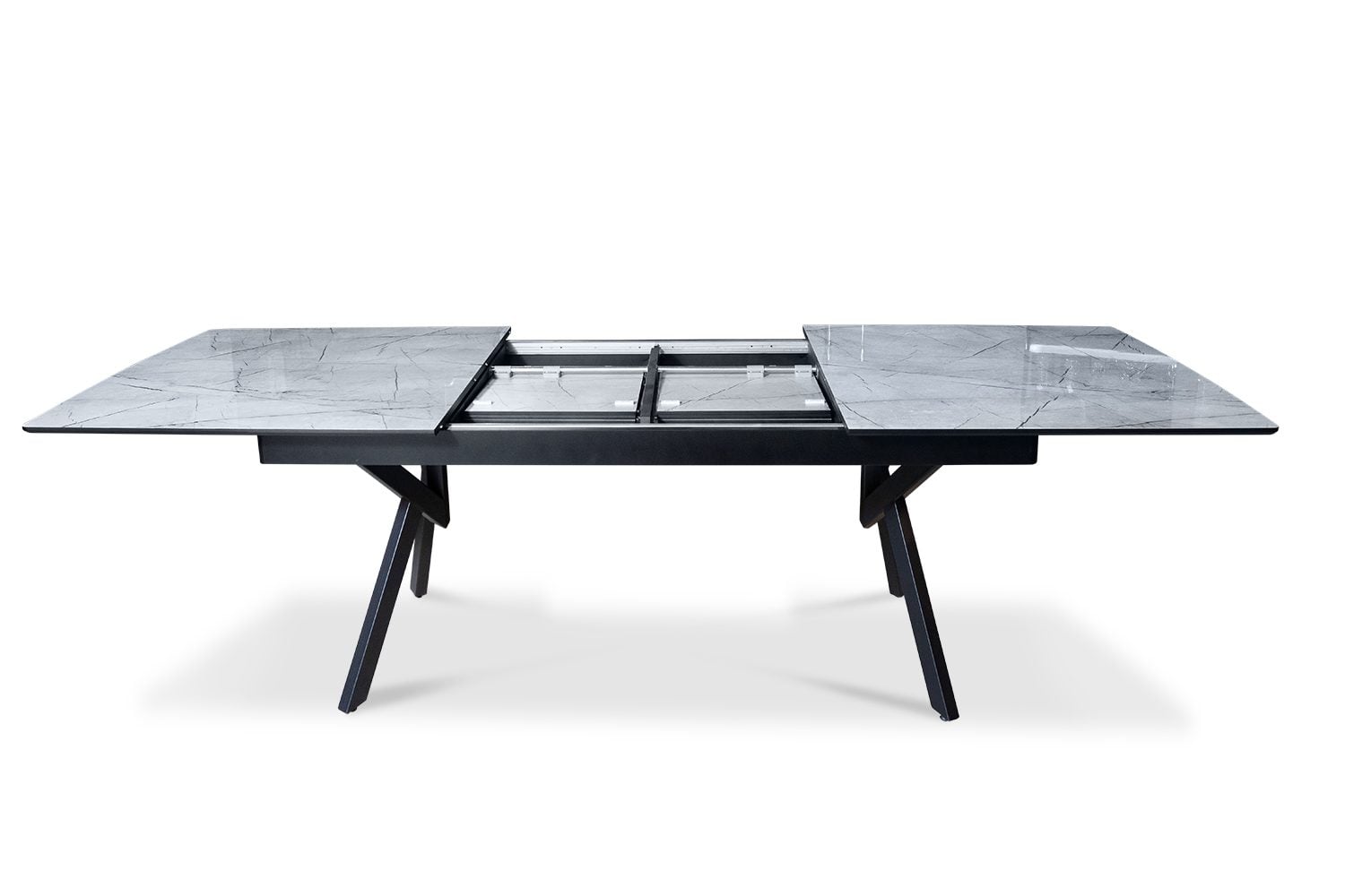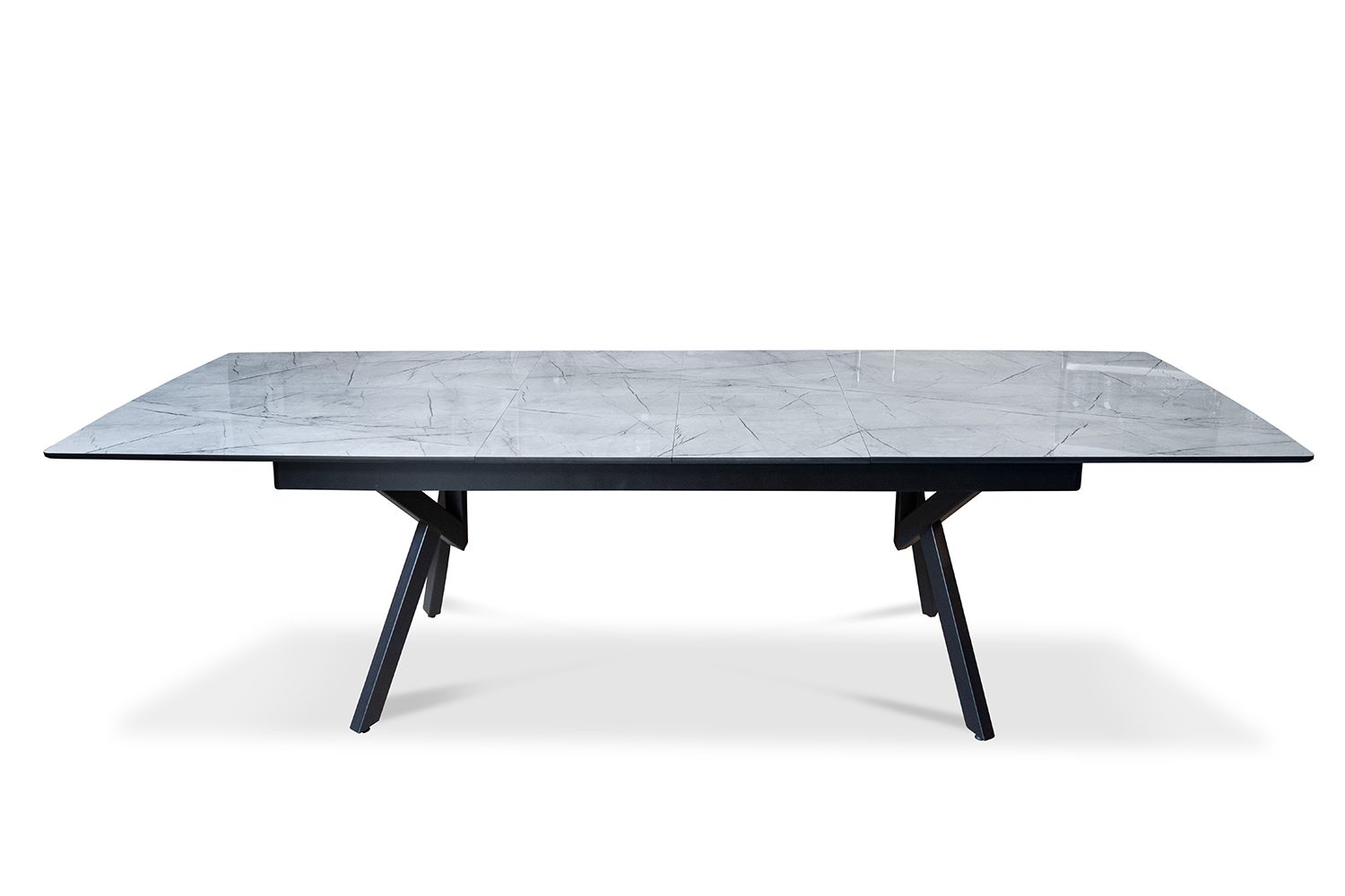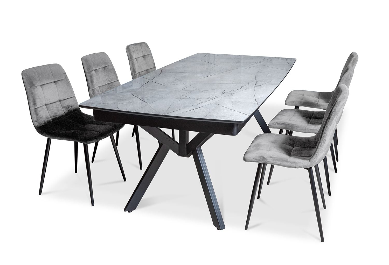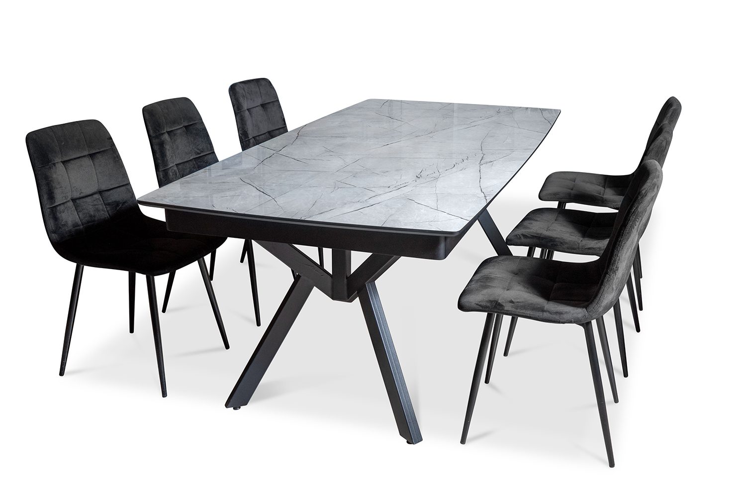 פינת אוכל מלבנית דמוי שיש שחור דגם ספיידר + 6 כסאות דגם סנדרין – 10 סועדים