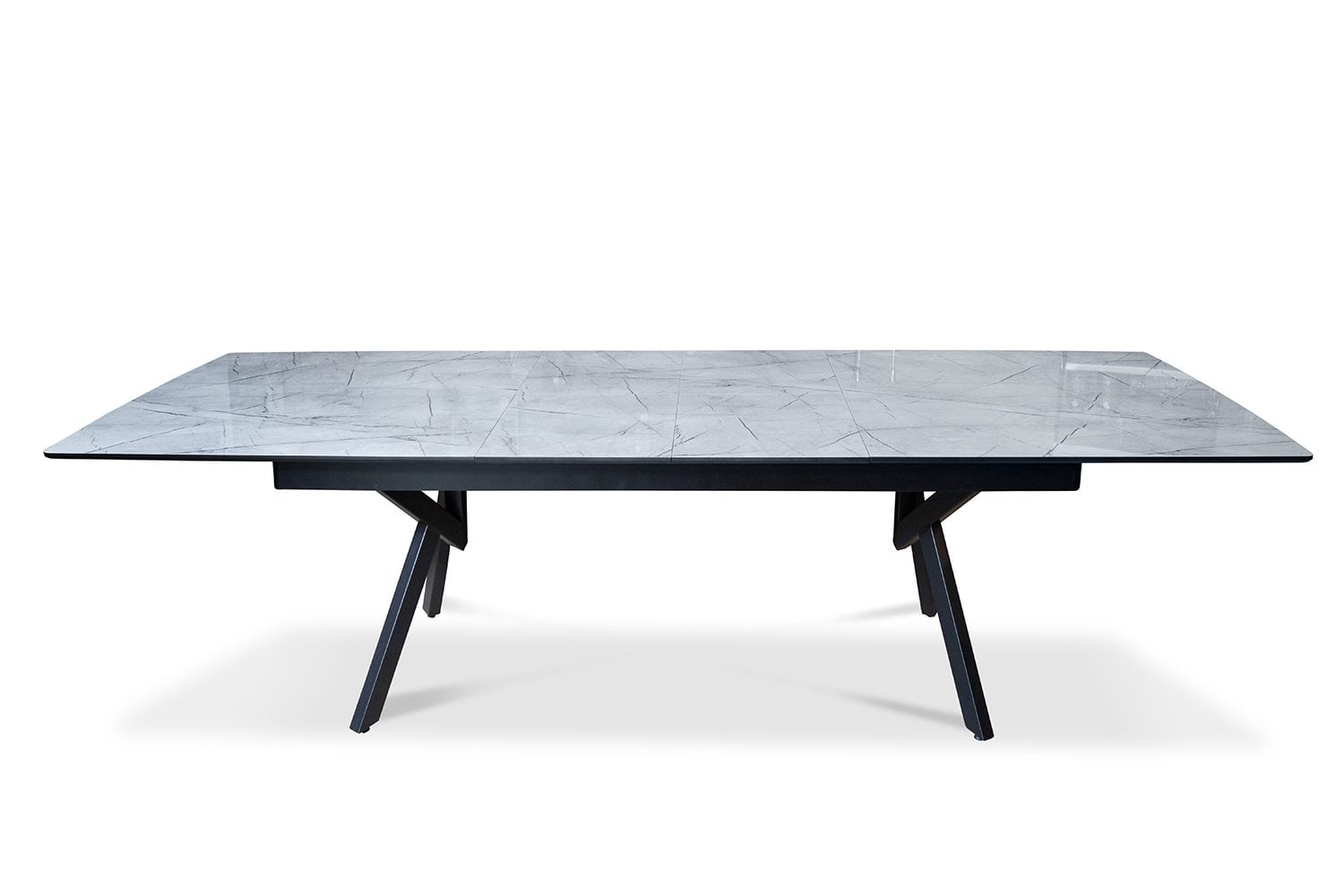 פינת אוכל מלבנית דמוי שיש לבן מבריק דגם אייקון + 6 כסאות – 14 סועדים
