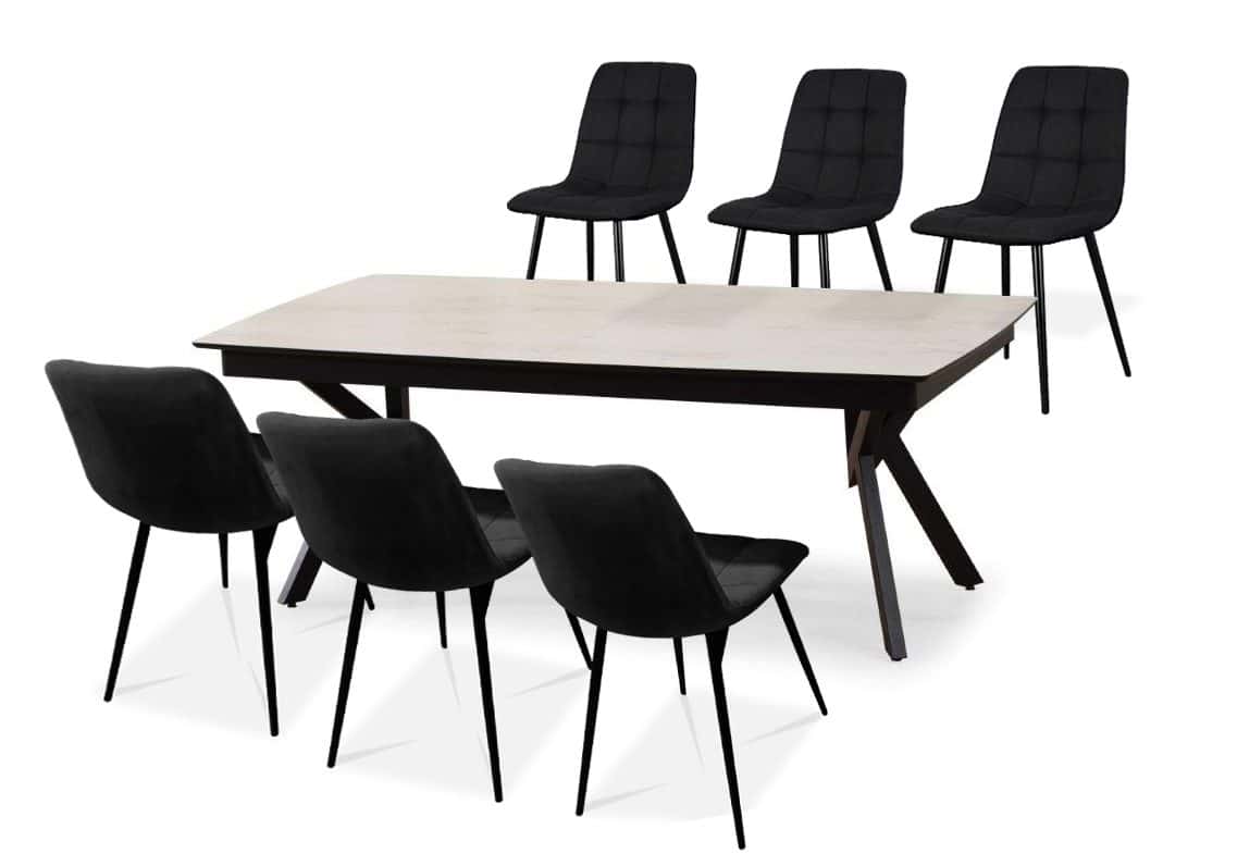 פינת אוכל מלבנית שיש לבן מבריק דגם קונקורד + 6 כסאות – 14 סועדים