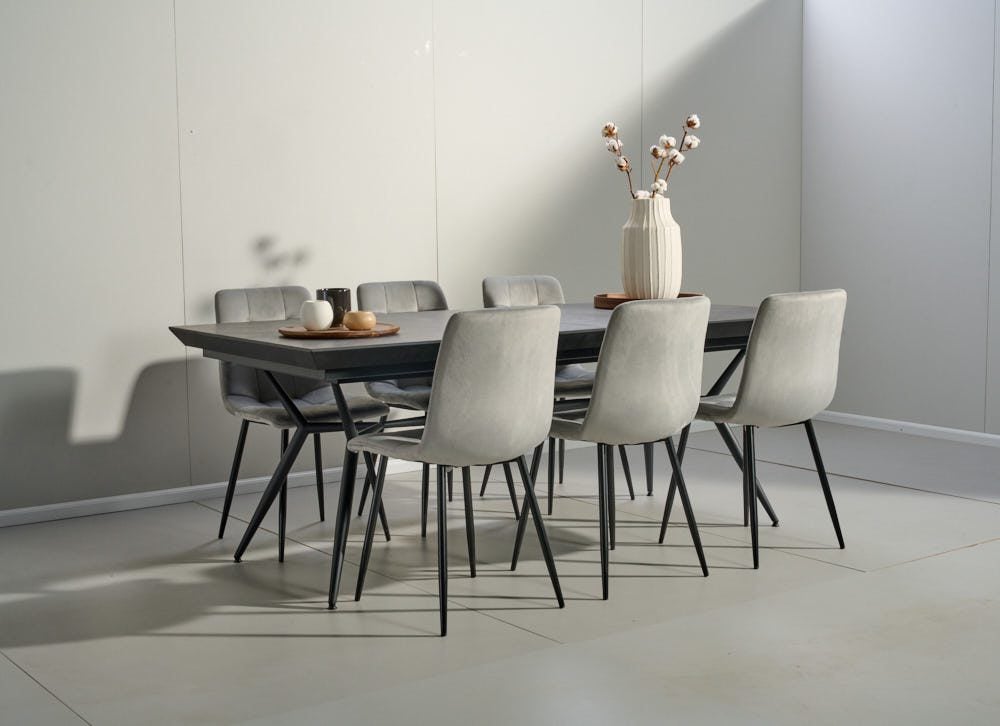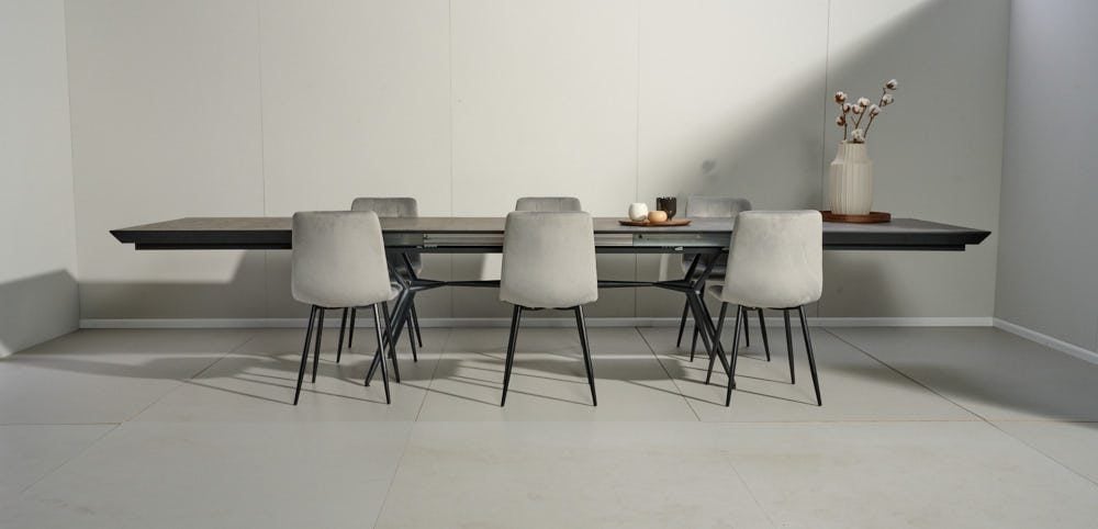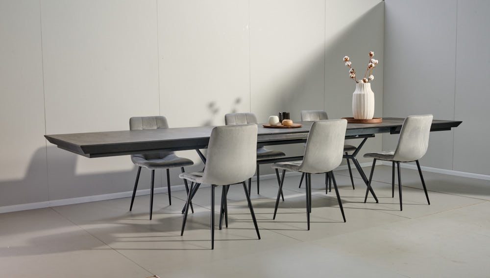 פינת אוכל מלבנית דמוי בטון דגם אבניו + 6 כסאות – 10 סועדים