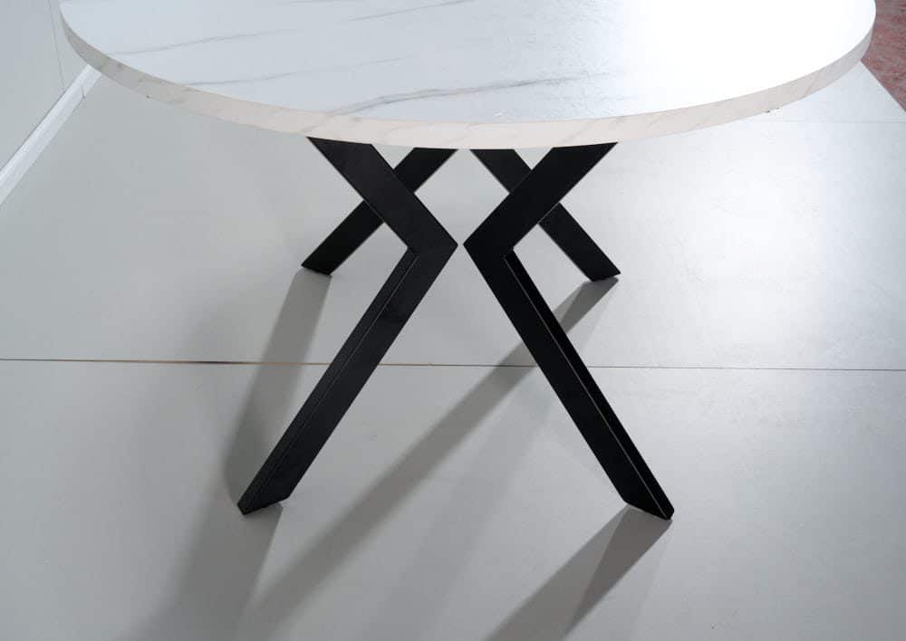 פינת אוכל עגולה דגם אלמוס דמוי שיש לבן מעוצבת עד הפרטים הקטנים ביותר .