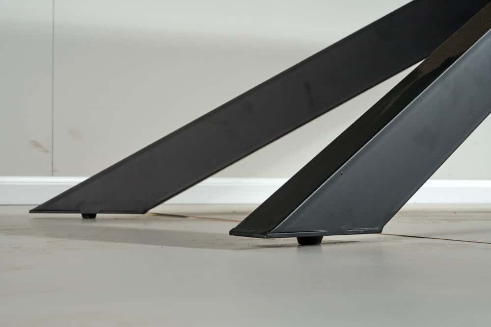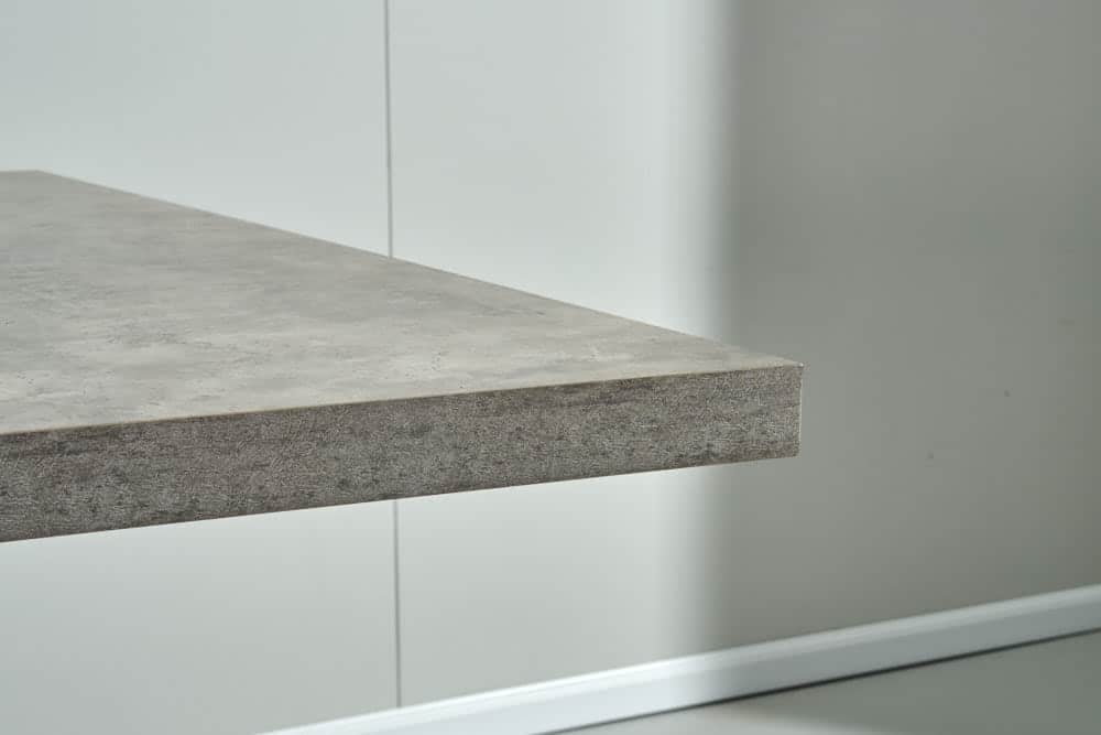 שולחן האוכל עשוי MDF בציפוי למינציה דמוי בטון , ורגלי השולחן עשויים ממתכת עם גימור צביעה אלקטרוסטטי נגד חלודה בצבע שחור.
