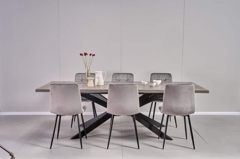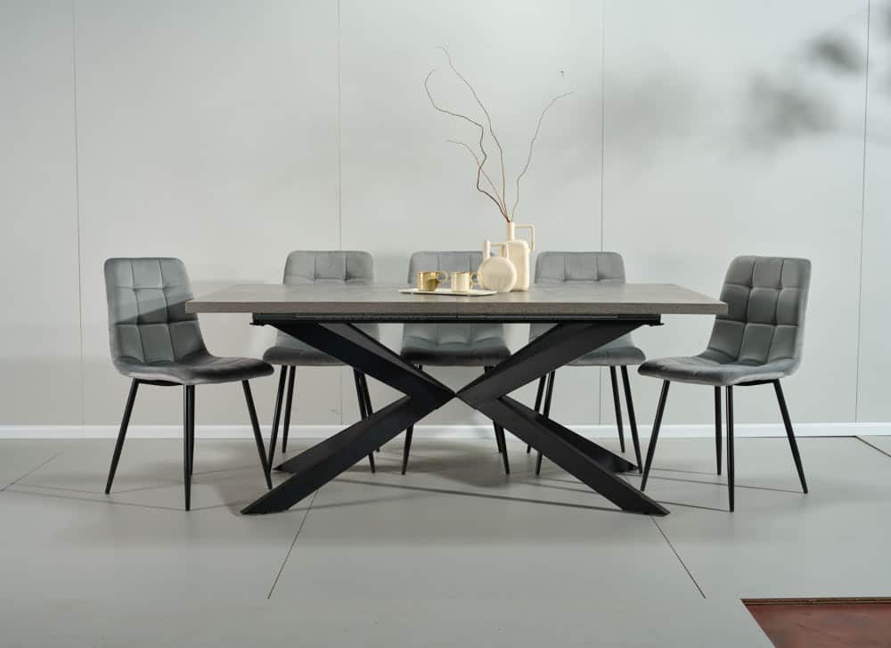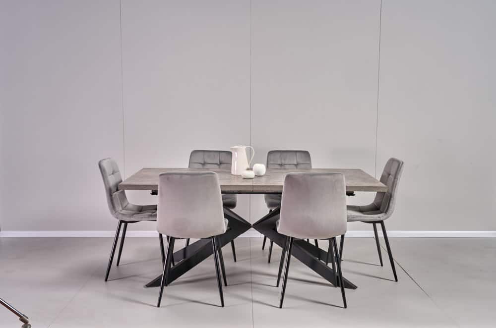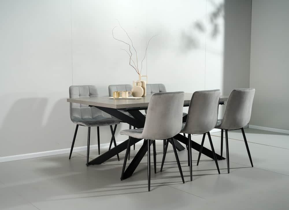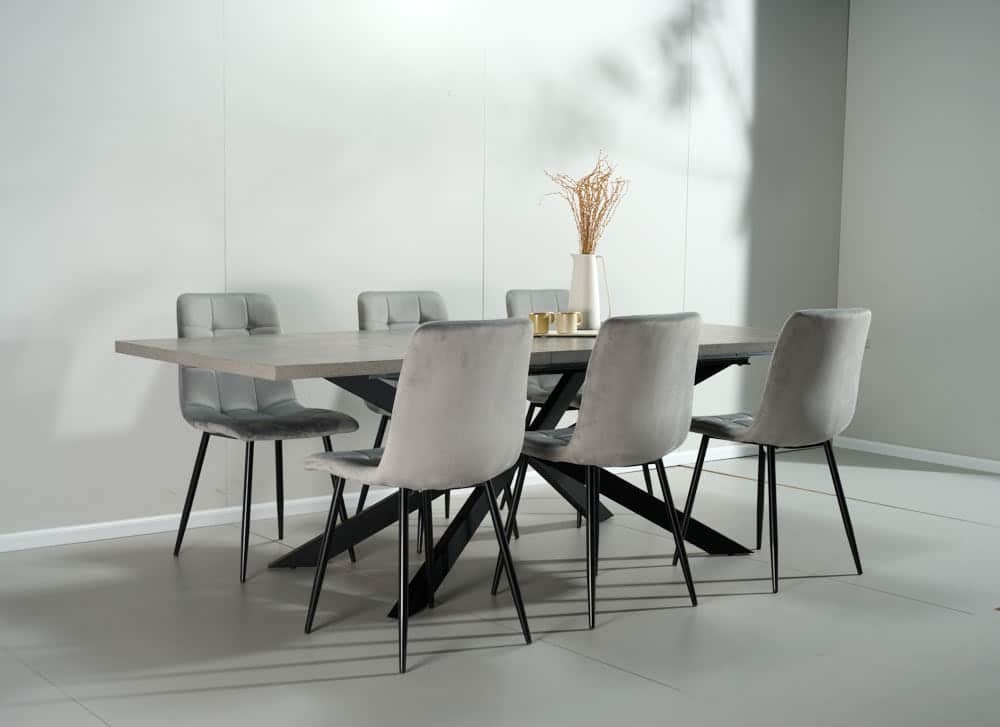 פינת אוכל מלבנית דמוי בטון דגם ספיידר + 6 כסאות – 10 סועדים