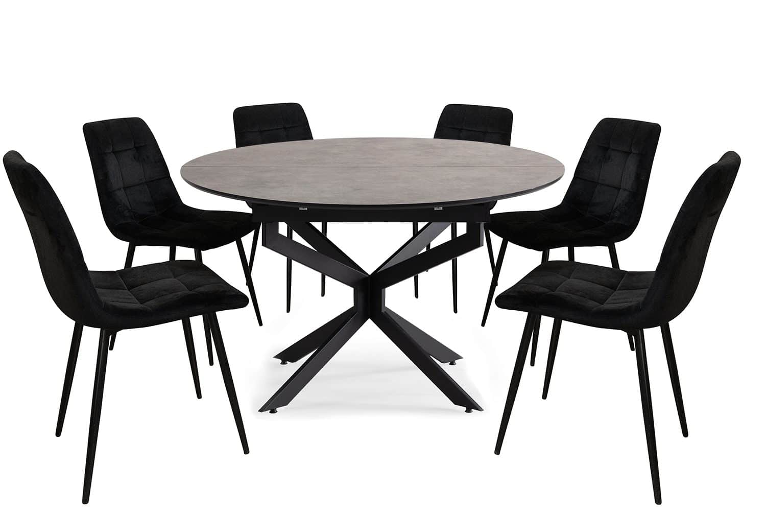 פינת אוכל עגולה נפתחת דמוי בטון דגם לונה + 6 כסאות – 8 סועדים