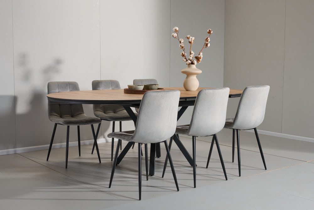 פינת אוכל מלבנית דמוי בטון דגם אבניו + 6 כסאות – 10 סועדים