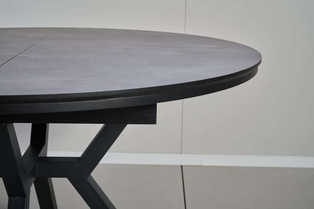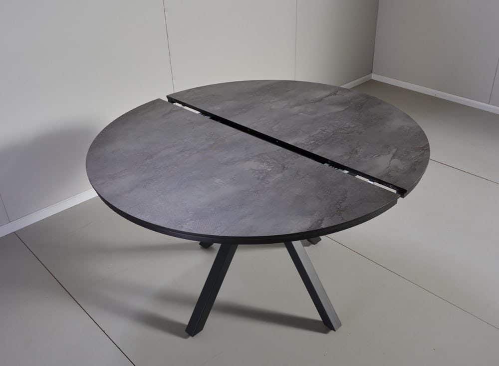 השולחן בקוטר 1.30 מ’ בעל 2 הארכות של 50 ס”מ נוספים וקוטר מלא של 2.36 מ’.