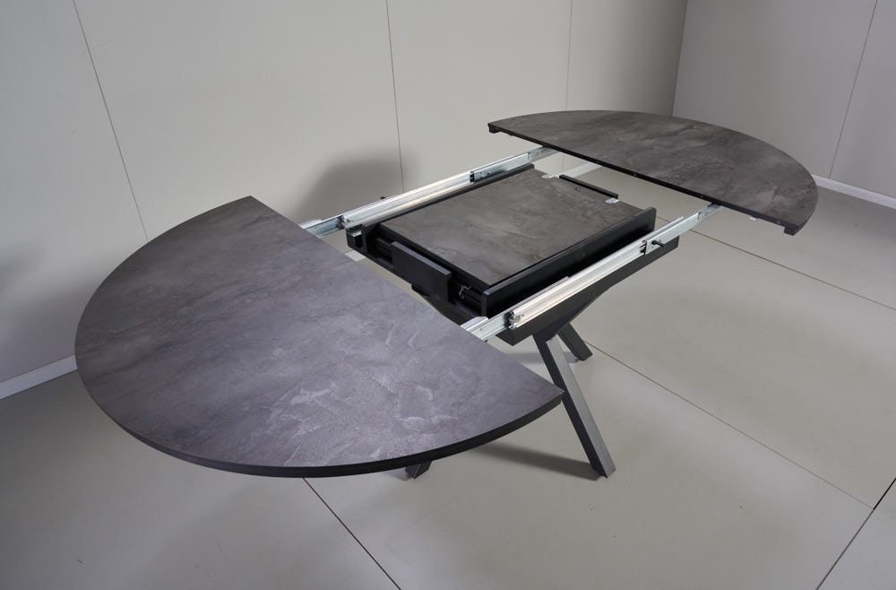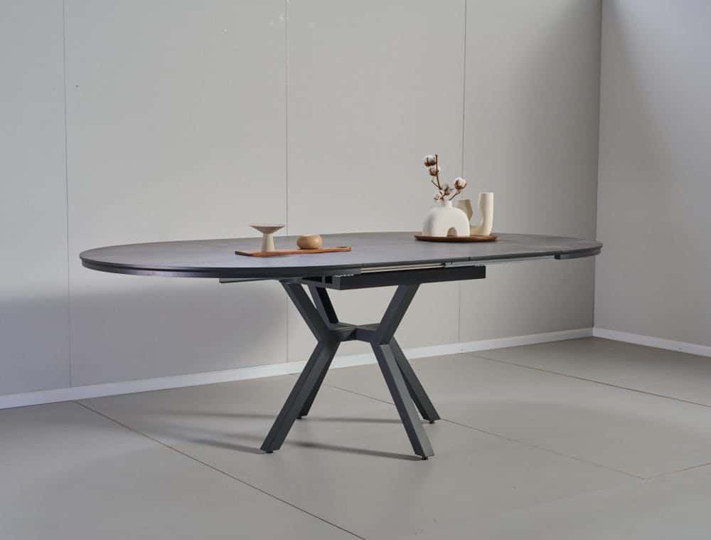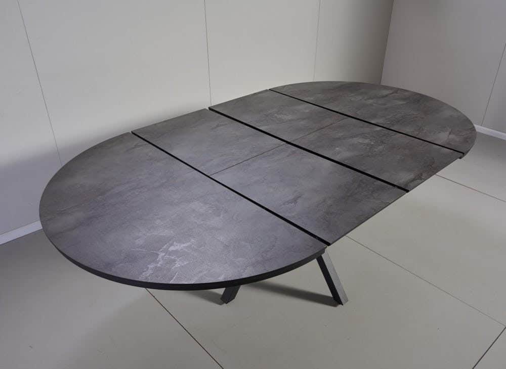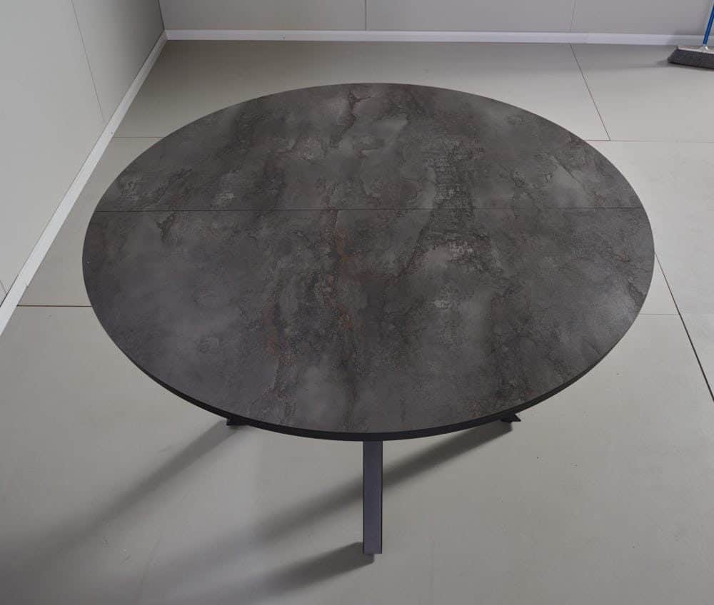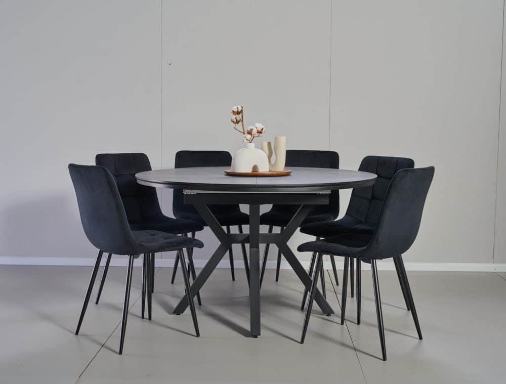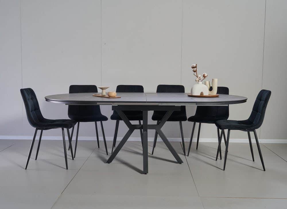 פינת אוכל עגולה נפתחת דמוי שיש אפור דגם לונגו + 6 כסאות – 10 סועדים