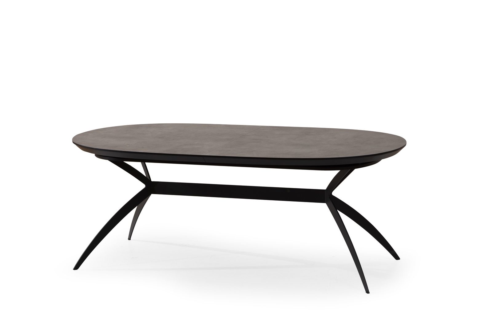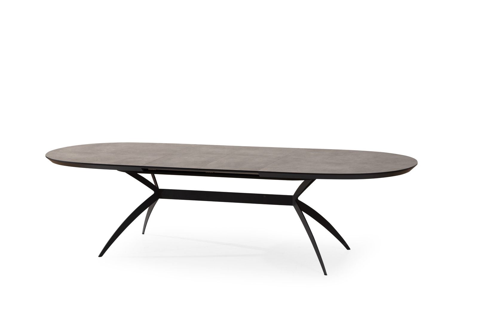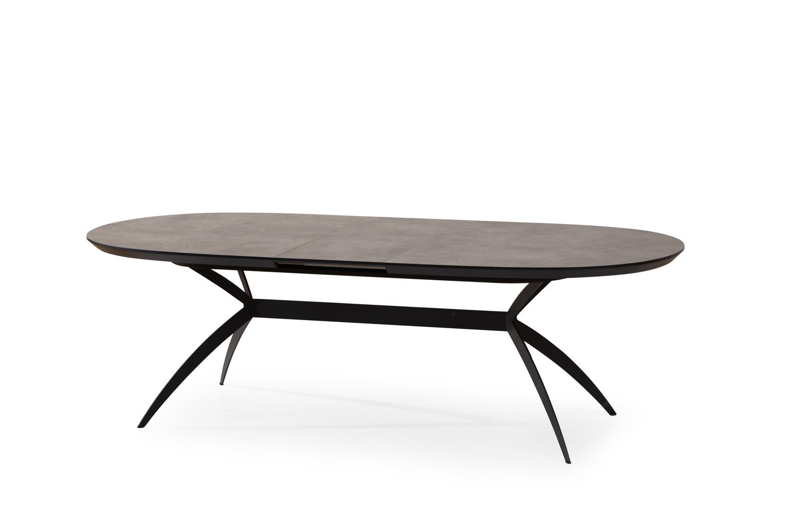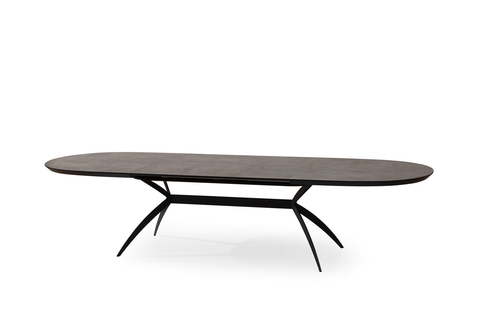 שולחן פינת אוכל אובלי ייחודי למראה דגם סורינו בגימור דמוי בטון בעל צללית דופן נמוכה לאחסנת ההארכות הפנימיות עשיר וחם במראהו ומעוצב עד הפרטים הקטנים ביותר .
