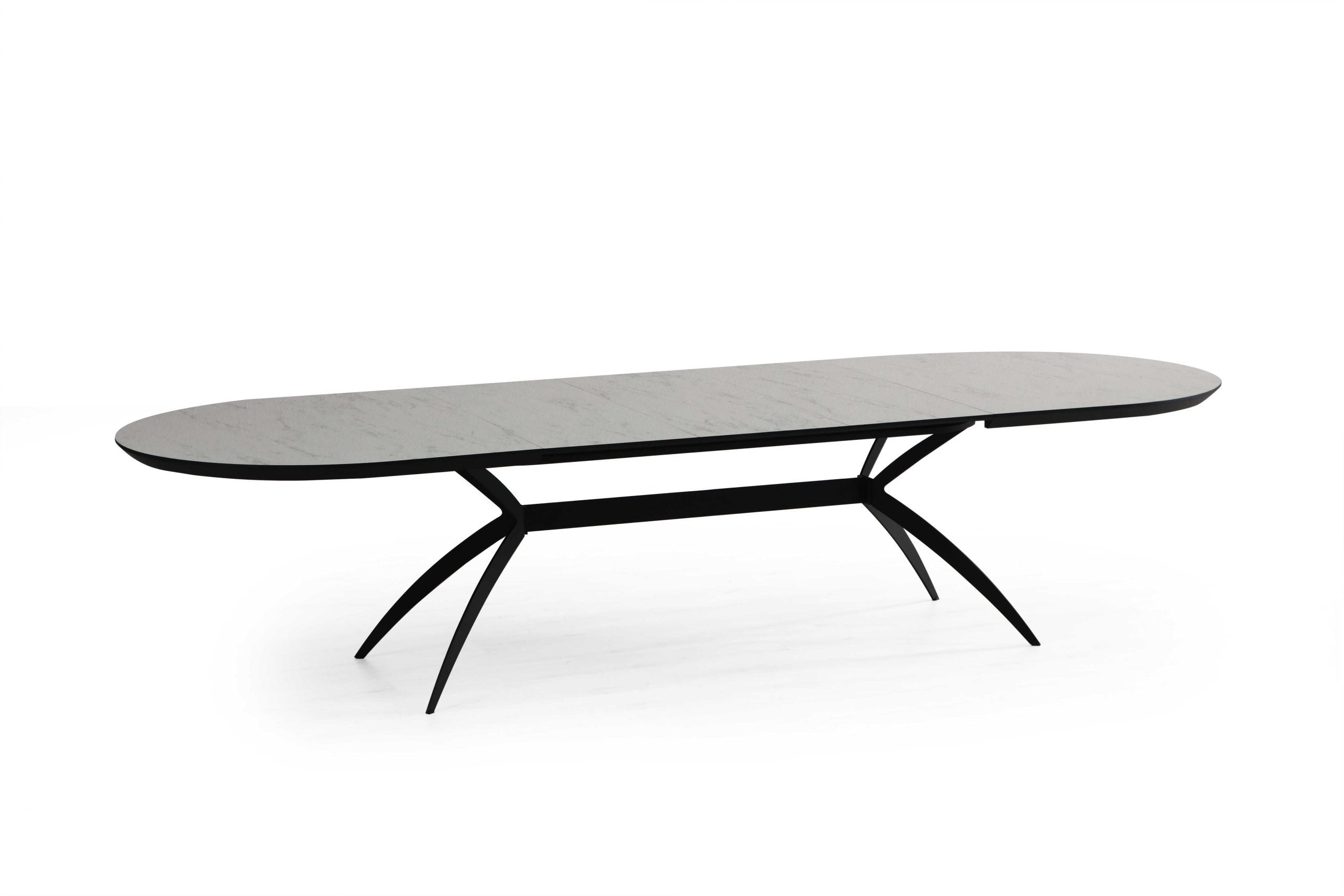 שולחן אוכל אובלי דגם סורינו דמוי שיש לבן מבריק – 14 סועדים