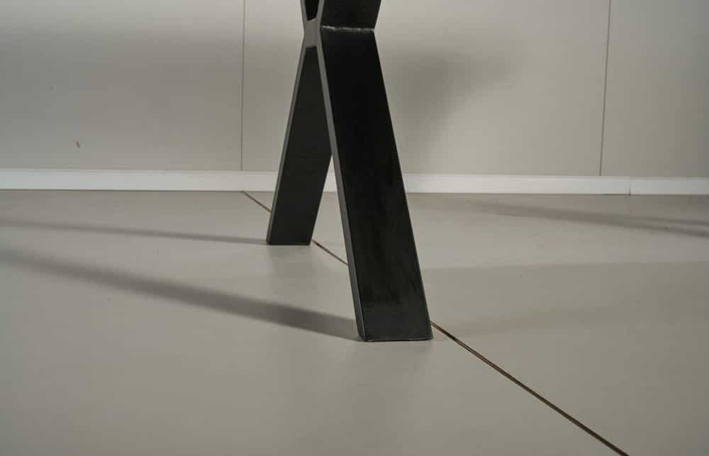 פינת האוכל בציפוי פורניר מדמוי עץ מלא, ורגלי השולחן עשויות מתכת עם שכבת פלסטיק המגינה על הרגליות למניעת שחיקה.