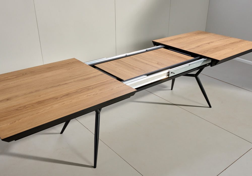 השולחן באורך 2 מ’ ובעל 4 הארכות של 50 ס”מ נוספים ואורך מלא של 4 מ’.