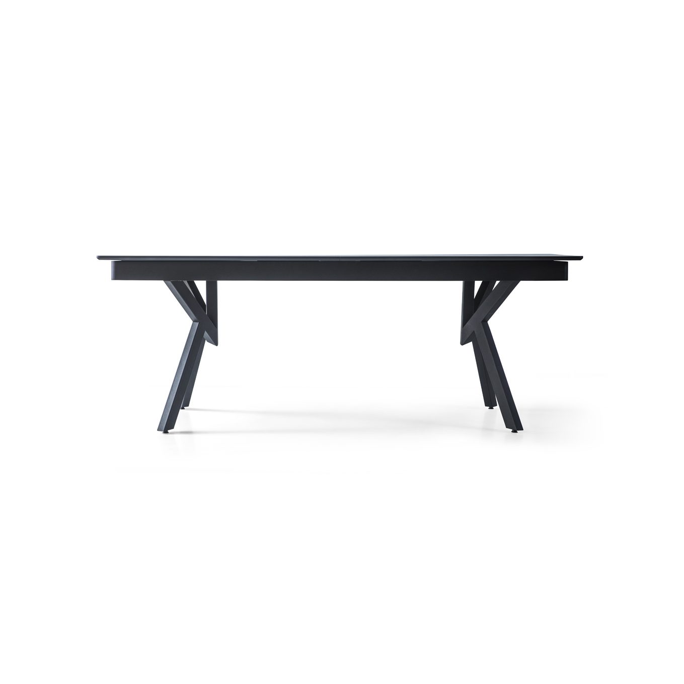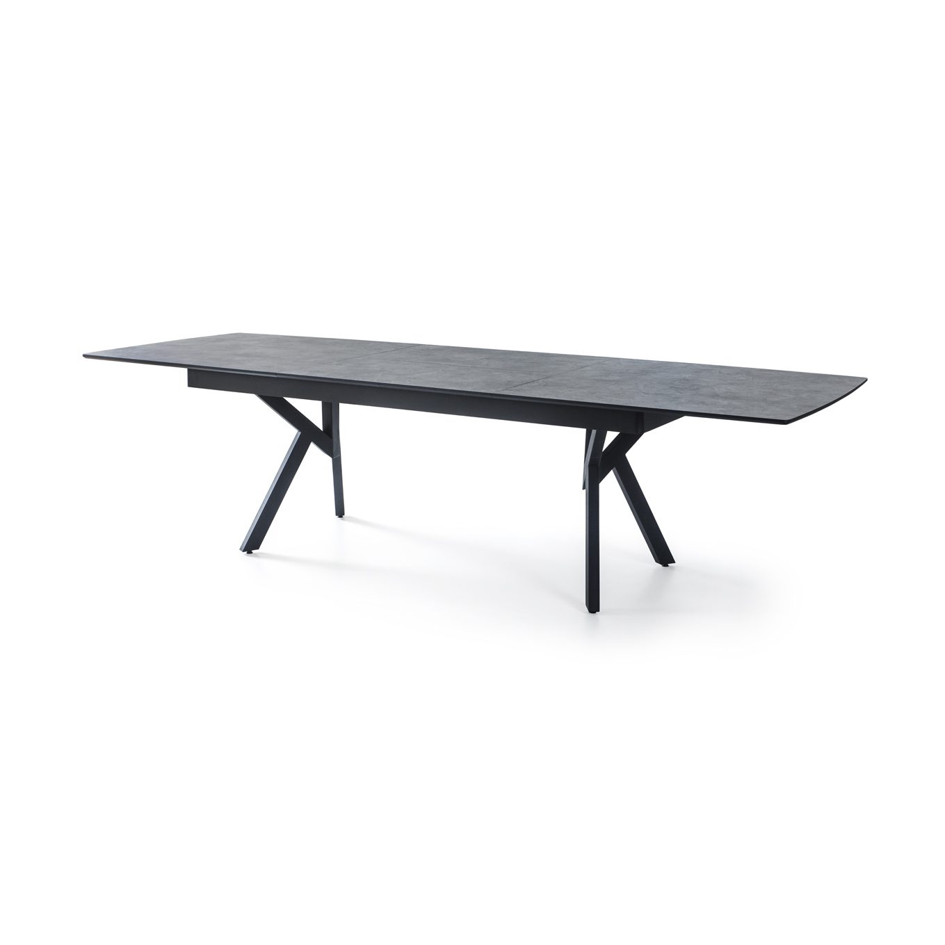 השולחן באורך 2.08 מ’ ובעל 2 הארכות של 45 ס”מ נוספים ואורך מלא של 2.98 מ’.