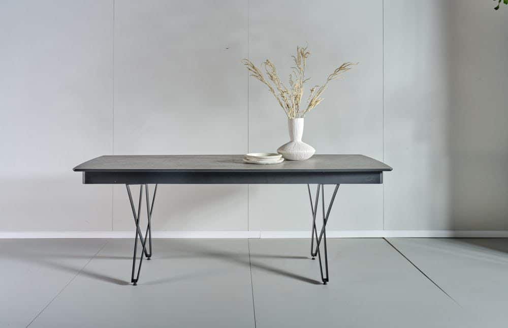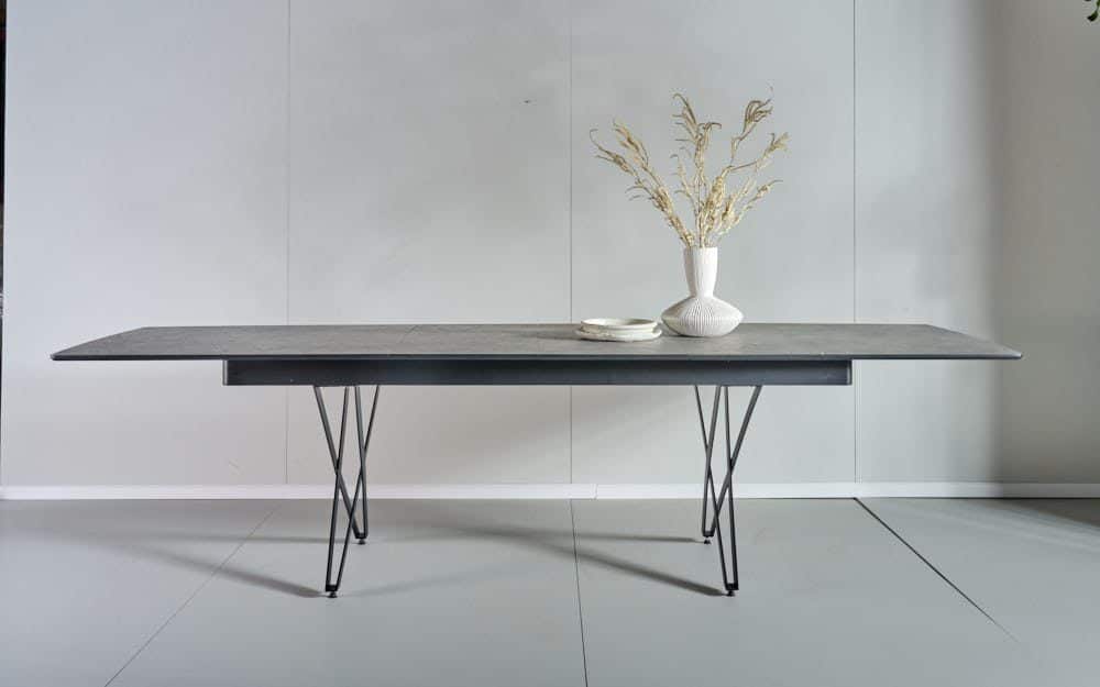 שולחן פינת אוכל מלבני דגם אנזו דמוי בטון מעוצב עד הפרטים הקטנים ביותר.