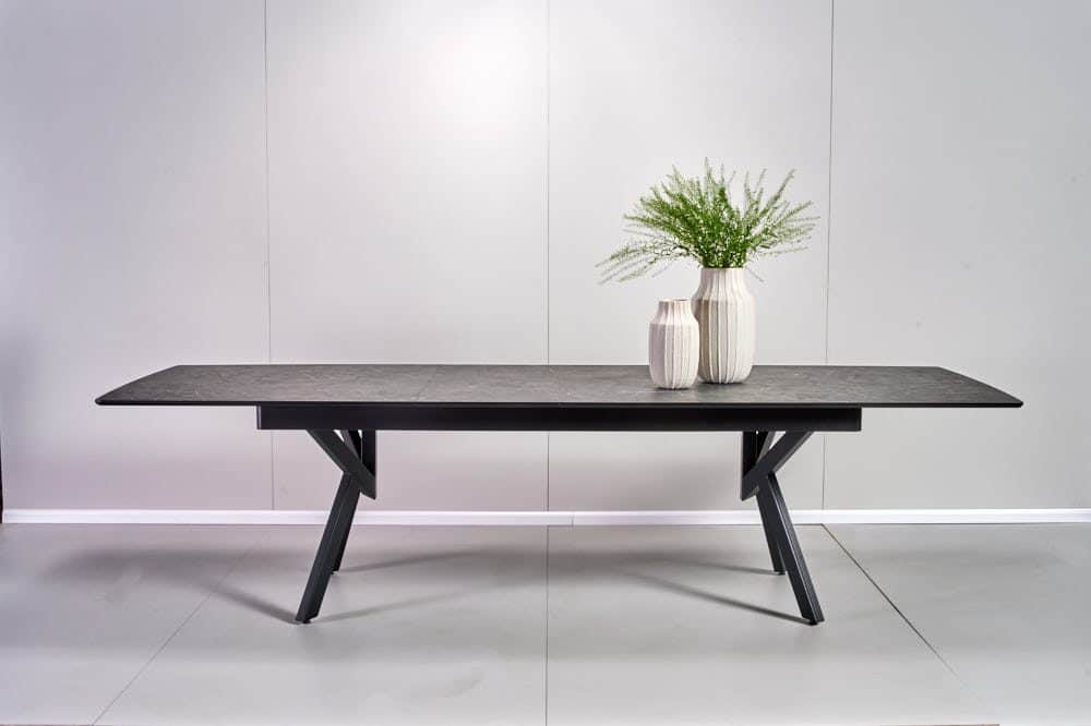שולחן אוכל מלבני דמוי שיש שחור דגם אייקון – 14 סועדים