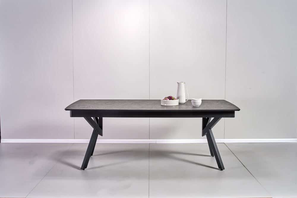 השולחן באורך 2.08 מ’ ובעל 2 הארכות של 45 ס”מ נוספים ואורך מלא של 2.98 מ’.