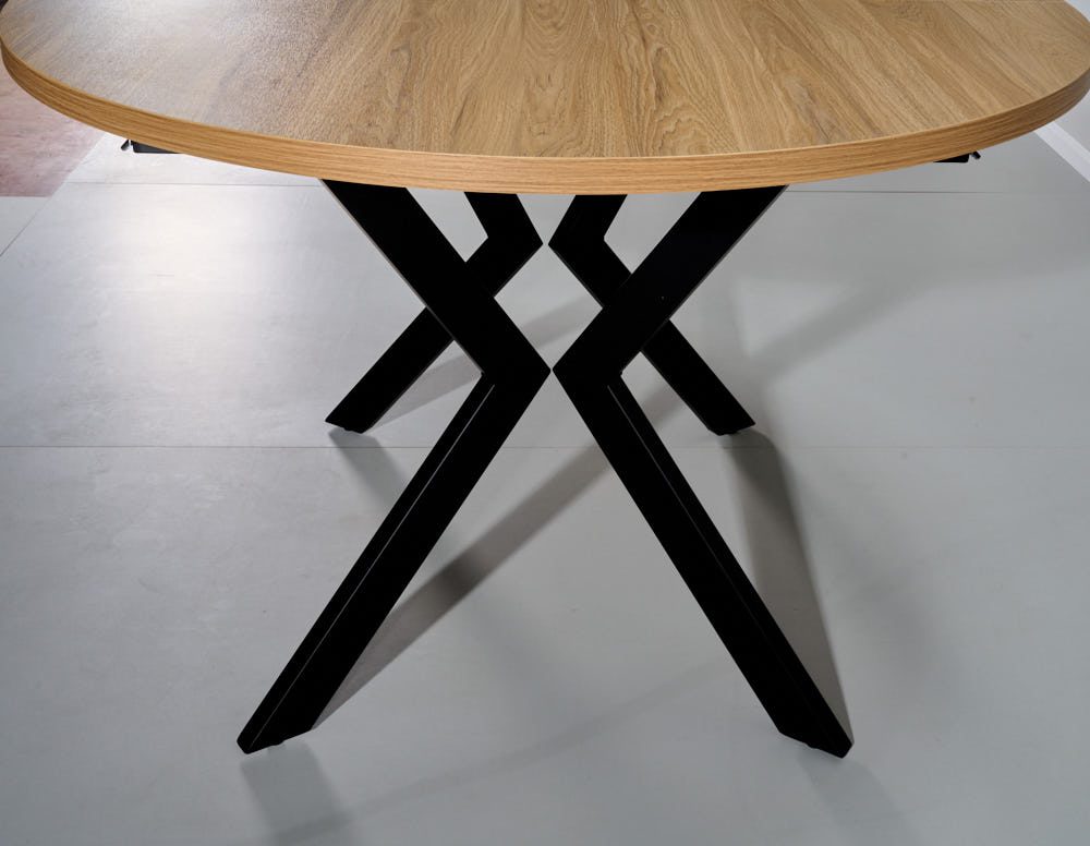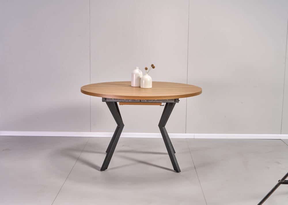 שולחן אוכל עגול נפתח דמוי עץ טבעי דגם אלמוס – 8 סועדים