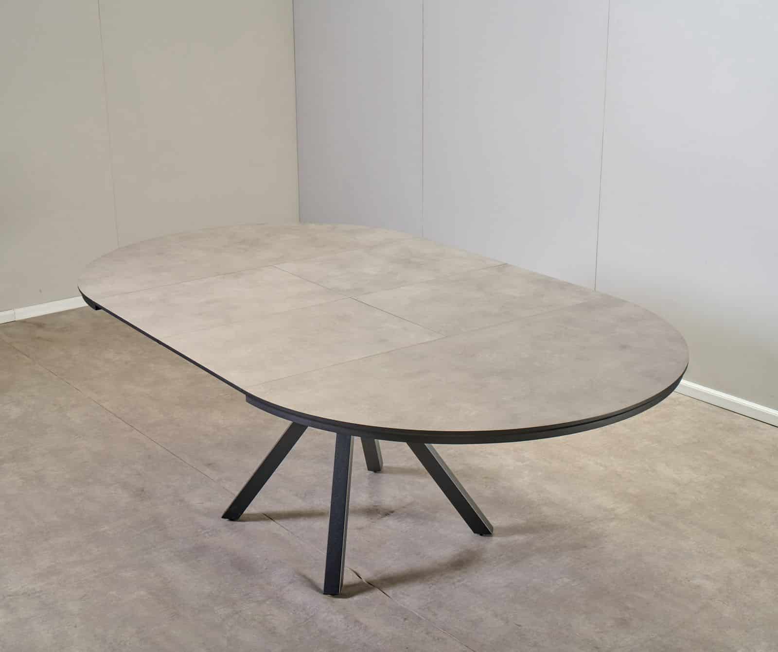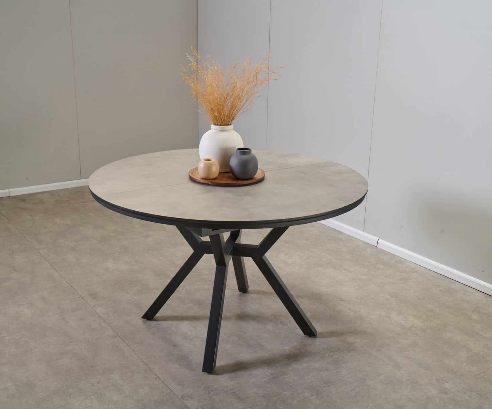 שולחן אוכל עגול נפתח דמוי בטון דגם לונגו – 10 סועדים